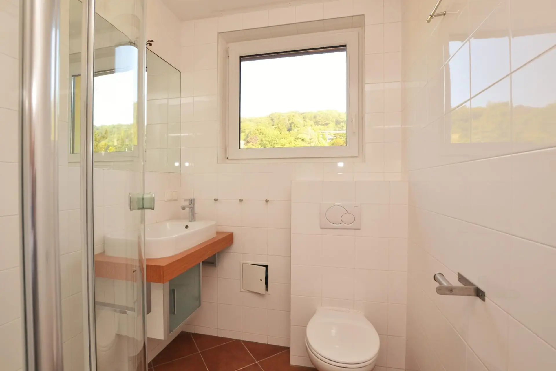 • zweites Badezimmer mit Dusche, WC und Handwaschbecken (mit Fenster)