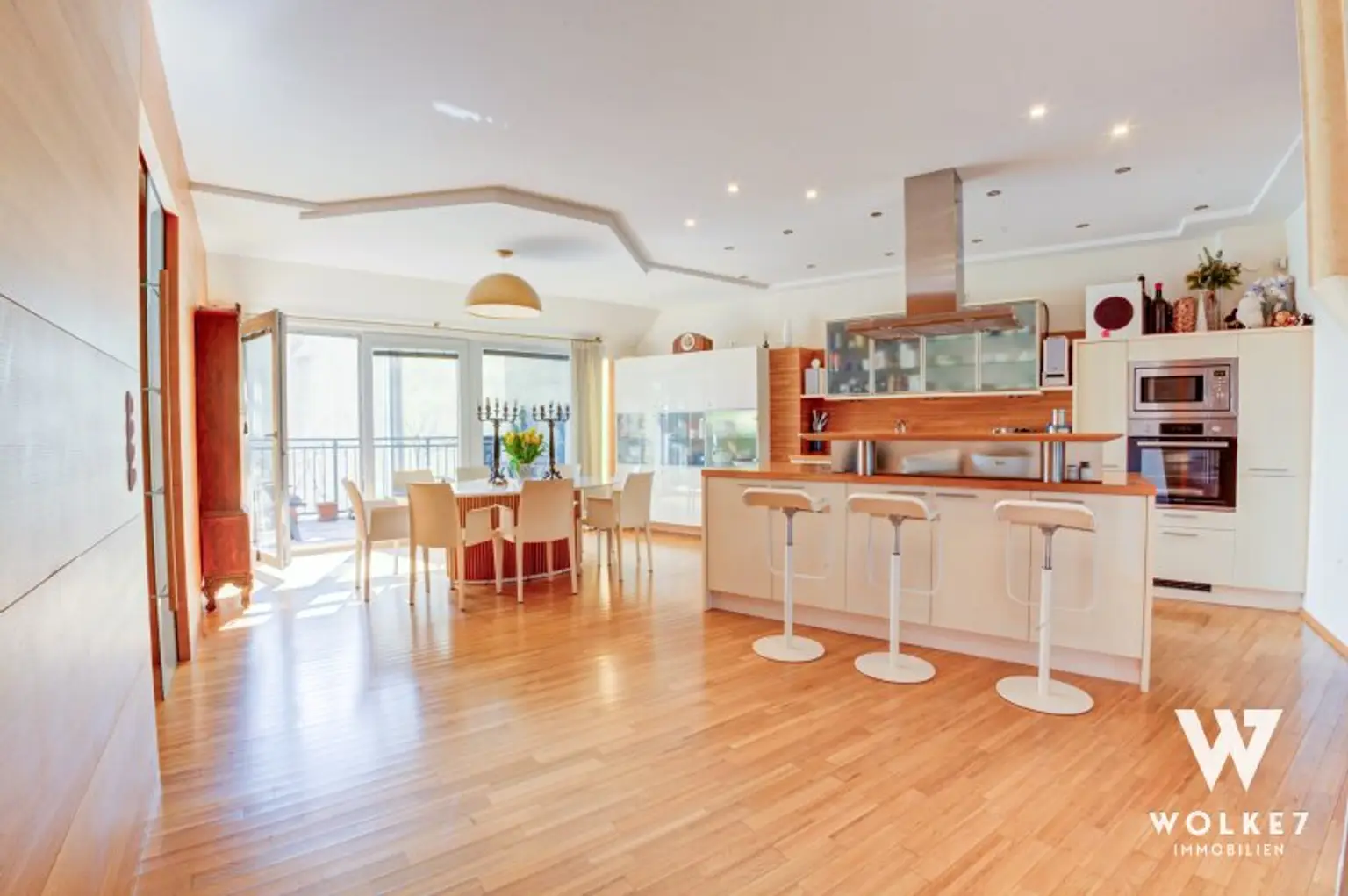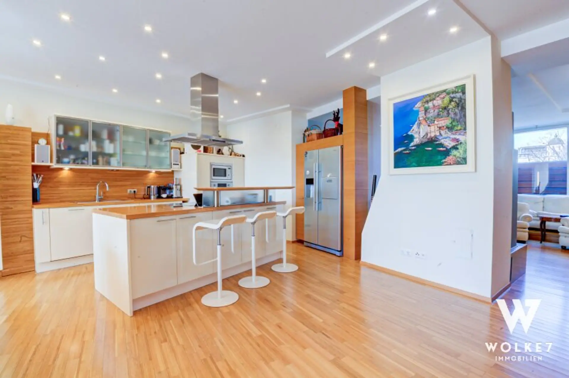 Ausstattung (Auszug): Fußbodenheizung und -kühlung, elektrischer Sonnenschutz, hochwertige Einbauküche, maßgefertigte Einbauten, Alarmanlage, Lift im Haus (Zugang bis in den Keller) sowie ein eigener Weinkeller.