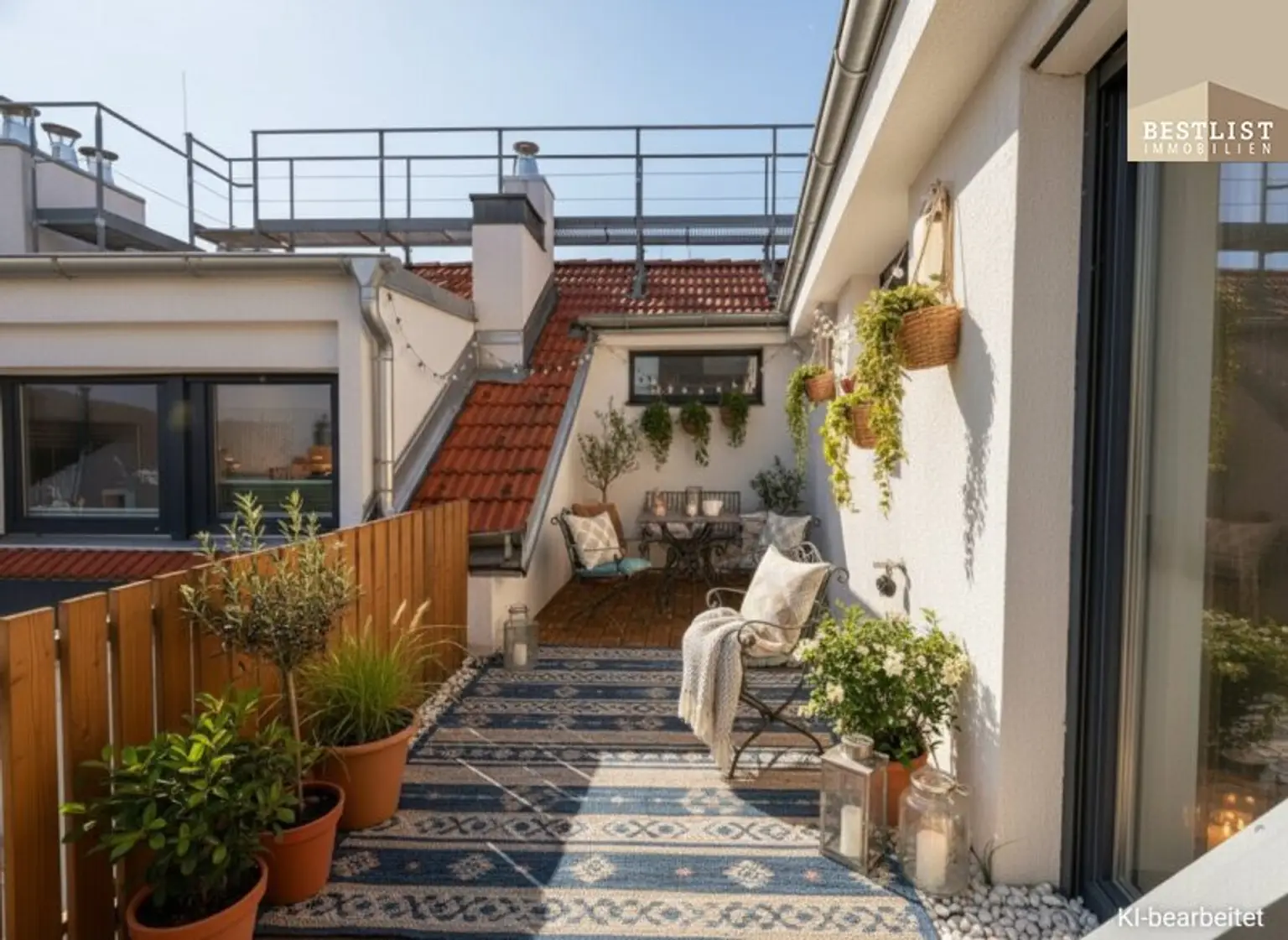 Gleichzeitig überzeugt die Terrasse durch ihren geringen Pflegeaufwand und bietet dennoch sehr viel Sonne. Für alle, die das Besondere suchen, besteht zudem die attraktive Möglichkeit, einen kleinen Obst- und Gemüsegarten anzulegen – urbanes Lebensgefühl inklusive.