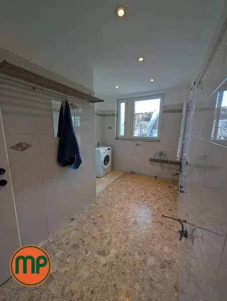 Das geräumige Badezimmer verfügt über einen pflegeleichten Steinboden und das WC ist separat angelegt, was den Wohnkomfort zusätzlich unterstreicht.
