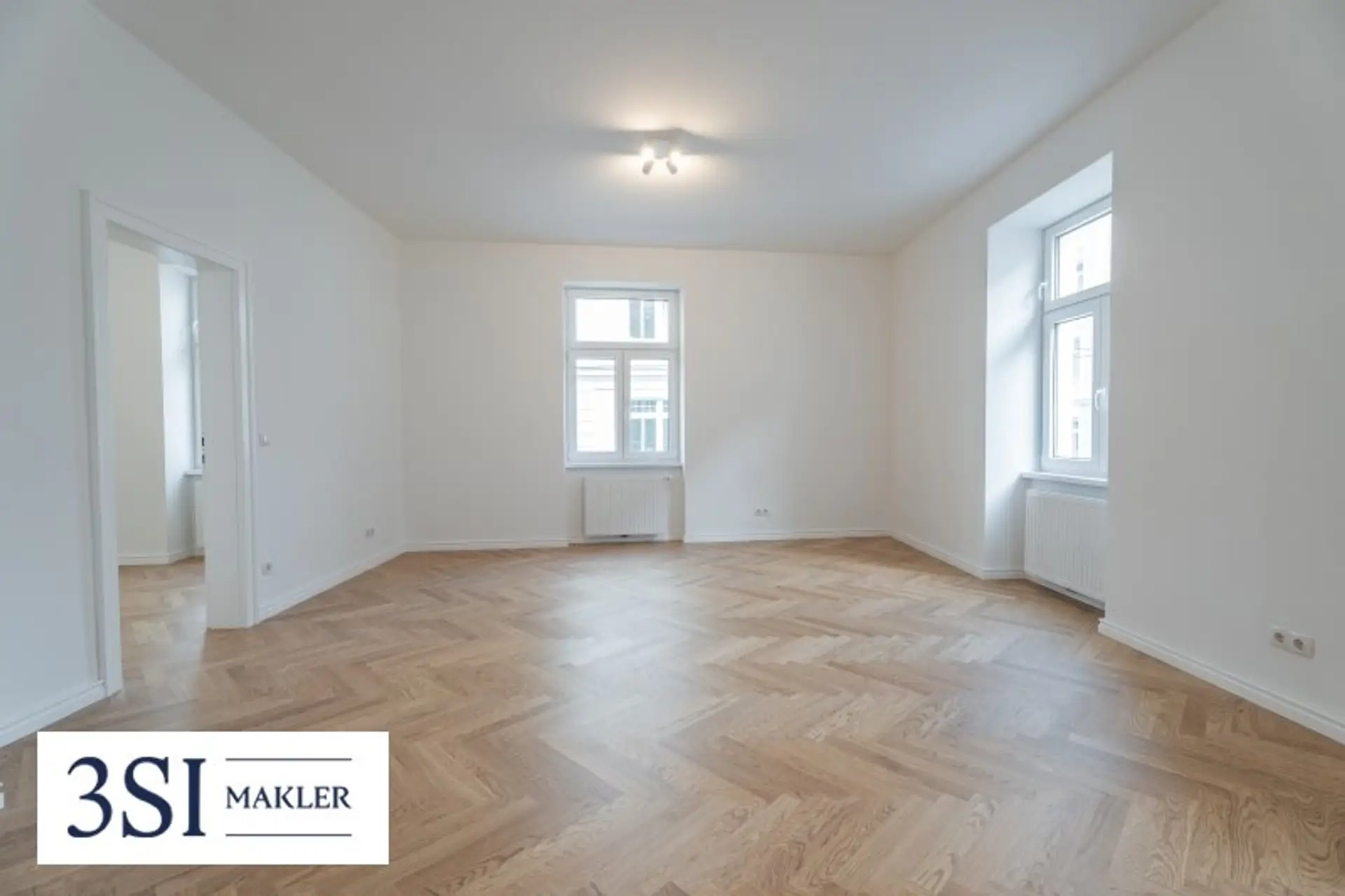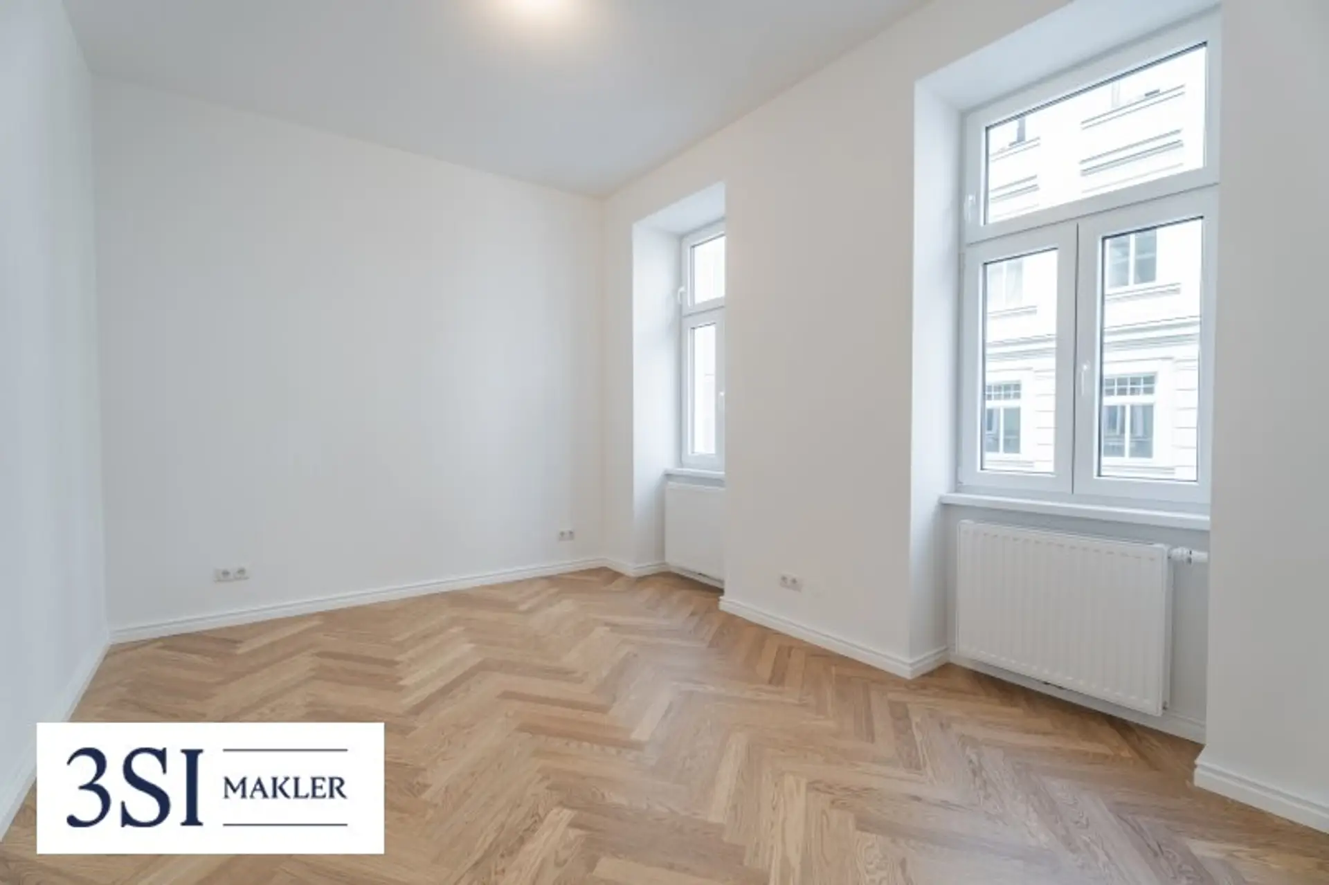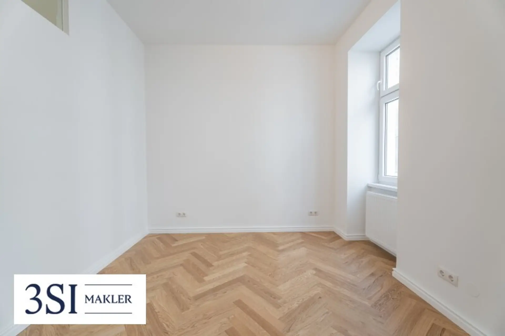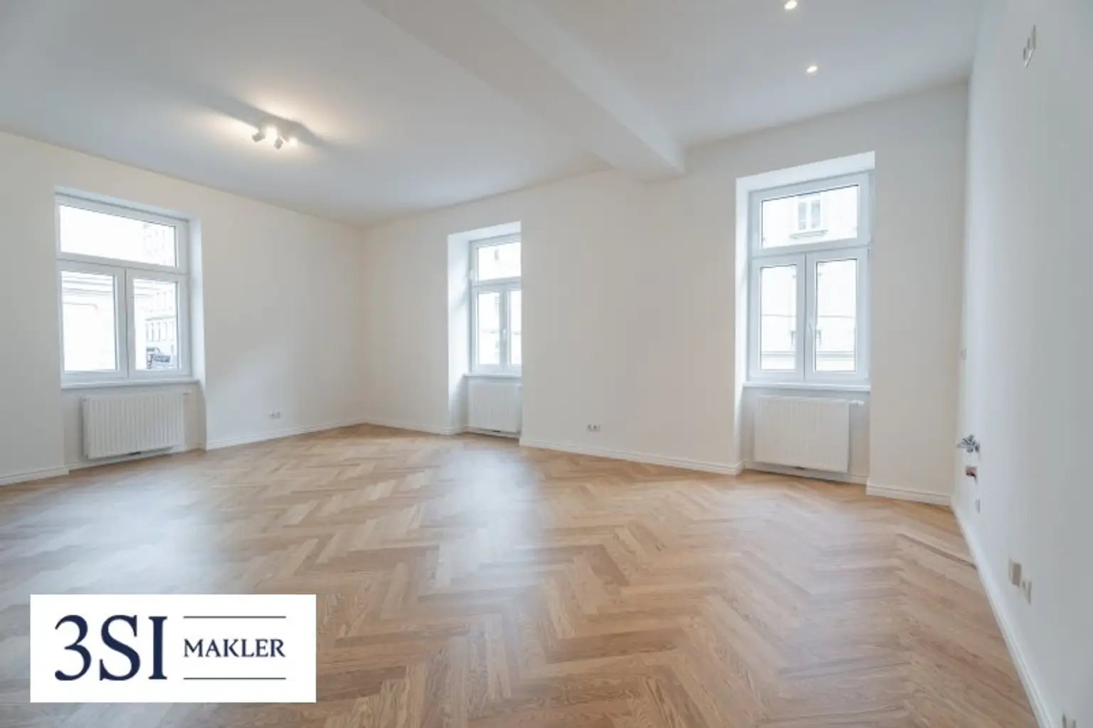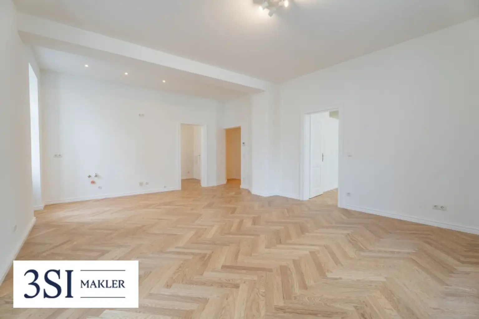Im Zuge der Sanierung wurde besonderer Wert auf Qualität, Komfort und zeitloses Design gelegt. Die Wohnung ist mit Fußbodenheizung, edlem Eichen-Fischgrätparkett in den Wohnräumen sowie einer hochwertigen, modernen Badausstattung versehen. Die offene Wohnküche schafft gemeinsam mit den großen Fensterflächen ein helles und einladendes Wohnambiente.