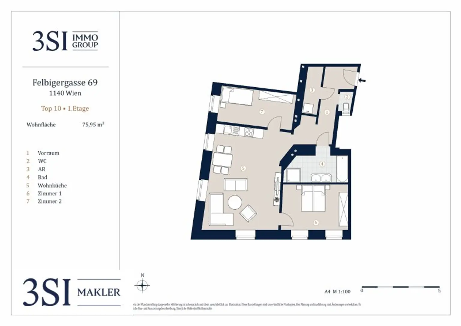 Die großzügige Raumaufteilung umfasst einen Vorraum, eine moderne Wohnküche, zwei Zimmer, ein stilvolles Badezimmer, ein separates WC sowie einen Abstellraum und bietet ein ideales Wohnkonzept für Familien, Paare oder anspruchsvolle Eigennutzer.
