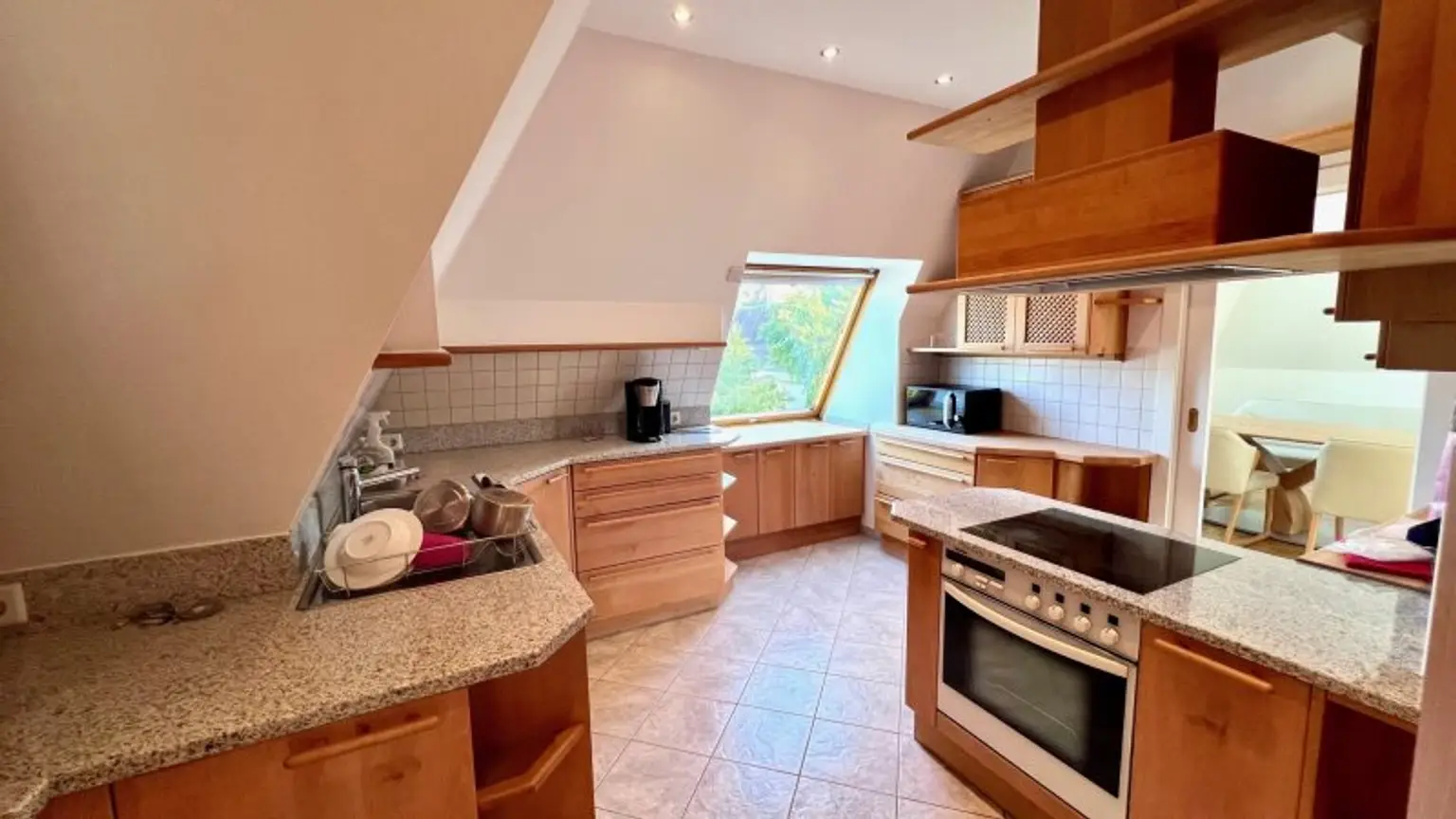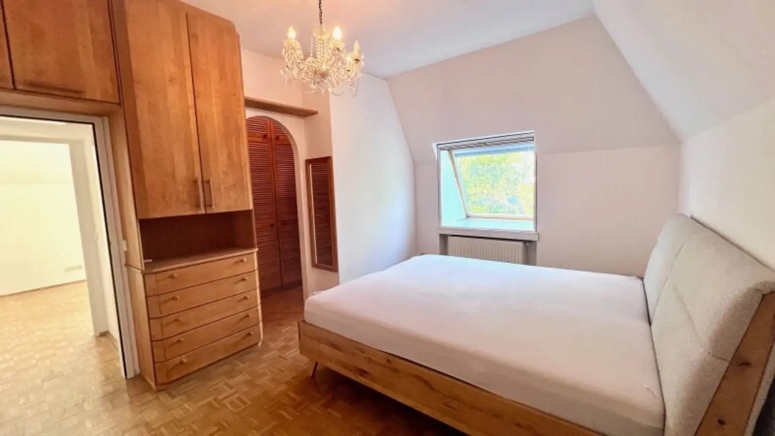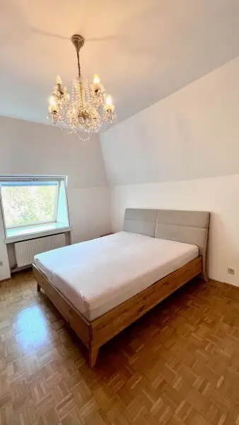 Zur Vermietung gelangt eine außergewöhnliche, großzügig geschnittene Familienwohnung in einer gepflegten Wohnhausanlage aus den siebziger Jahren, in bester Wohngegend in Unter Sankt Veit. Die Wohnung selbst befindet sich in "zweiter Reihe", somit ist viel Ruhe und ein Blick ins Grüne geboten. Es handelt sich um eine knapp 135 m² große Dachgeschosswohnung im vierten Obergeschoss (ohne Aufzug), ohne direkte Nachbarschaft Tür an Tür.