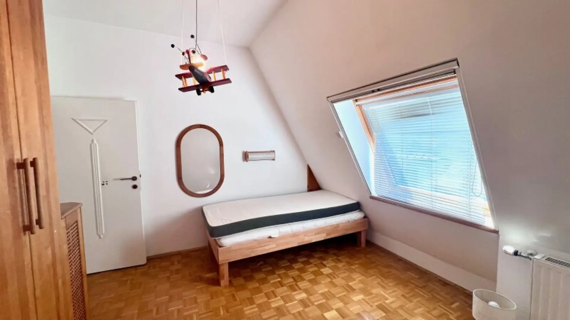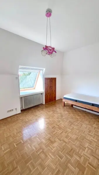 Die Wohnung verfügt über drei Schlafzimmer, welche eine fast quadratische Dimensionierung haben, daher lassen sie sich sehr gut möblieren. Das große Elternschlafzimmer mit über 14 m² verfügt über ein Doppelbett und viel Stauraum dank eines bestehenden großzügigen Einbauschrank. Die beiden Kinderzimmer liegen vis á vis und variieren in ihrer Größe zwischen 11 und 13 m².