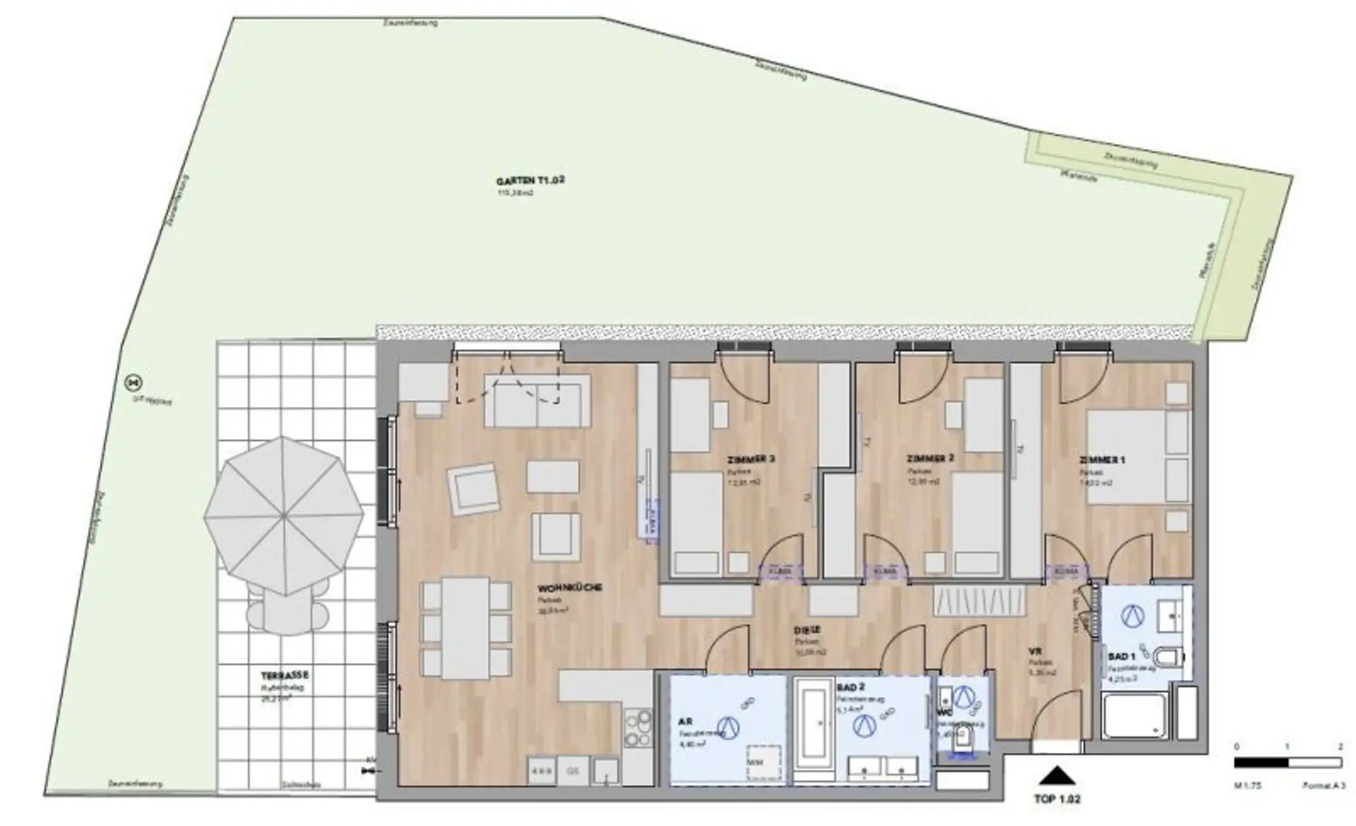 NEU - Großzügige Gartenwohnung mit südseitiger Terrasse - Top 1.02