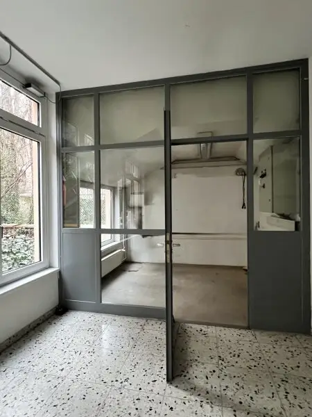 Eine Anlieferung ist über die Garagenzufahrt oder Rampe möglich. Die Innenräume können flexibel gestaltet werden, Lagerflächen sind im Haus vorhanden.