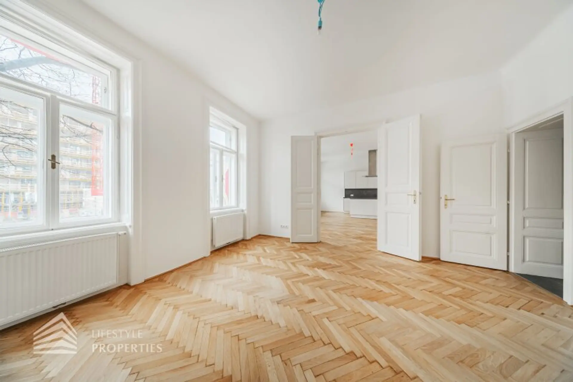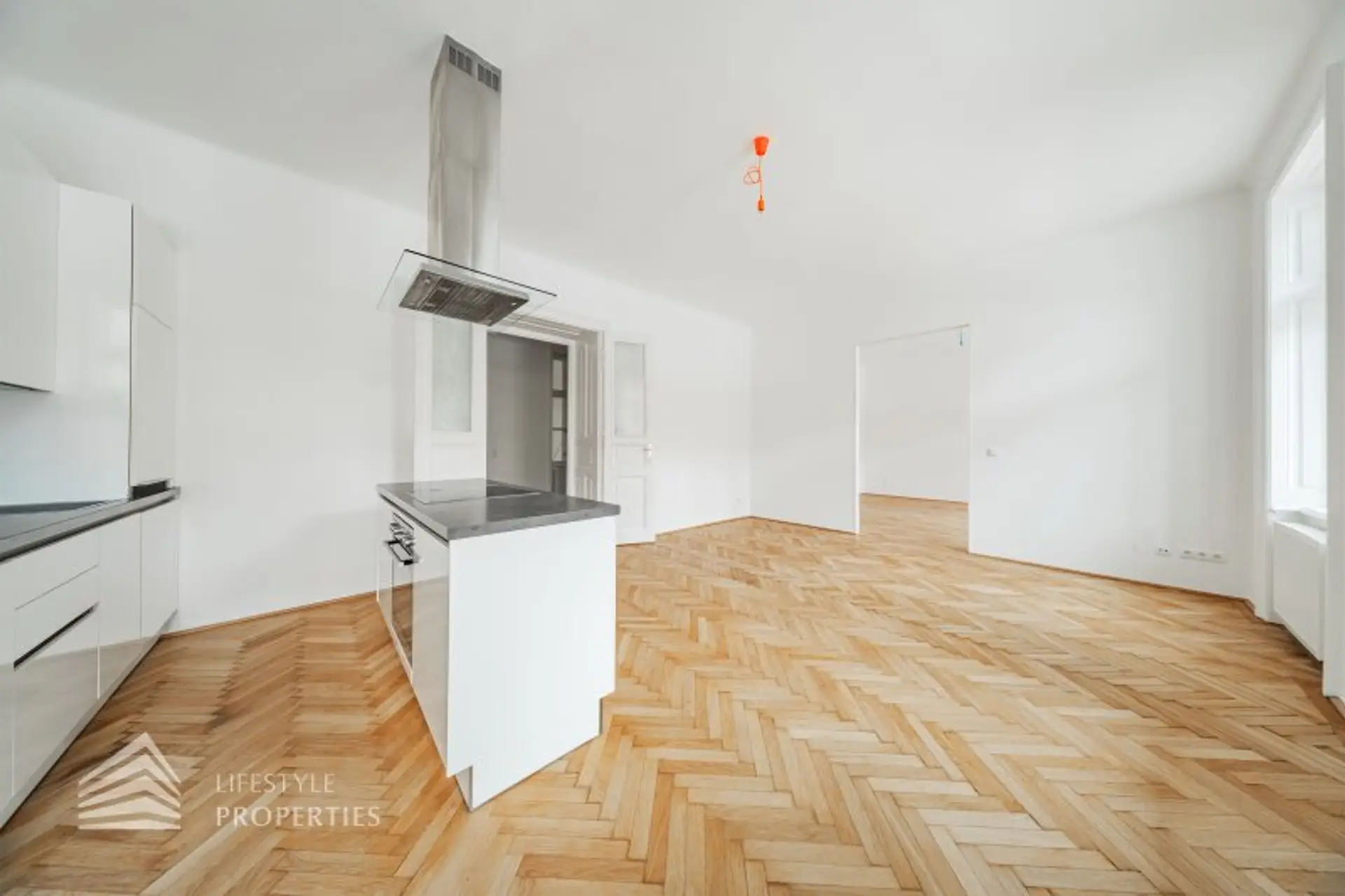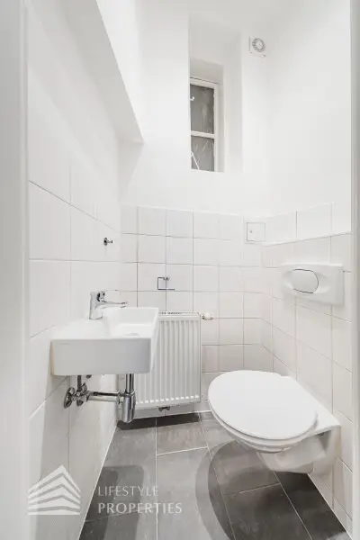 Die Liegenschaft befindet sich im 1. Stock (Mezzanin) und erstreckt sich über eine Fläche von ca. 64,13 m². Die Wohnung vereint typischen Altbaucharakter mit Fischgrätparkett und großen Flügeltüren. Die Wohnung teilt sich in einen Vorraum, ein Badezimmer mit Fenster, 2 Zimmer (inkl. großzügiger Wohnküche mit Kochinsel) sowie eine separate Toilette auf. Zudem wurde gerade ein Lift auf Kosten des Eigentümers installiert.