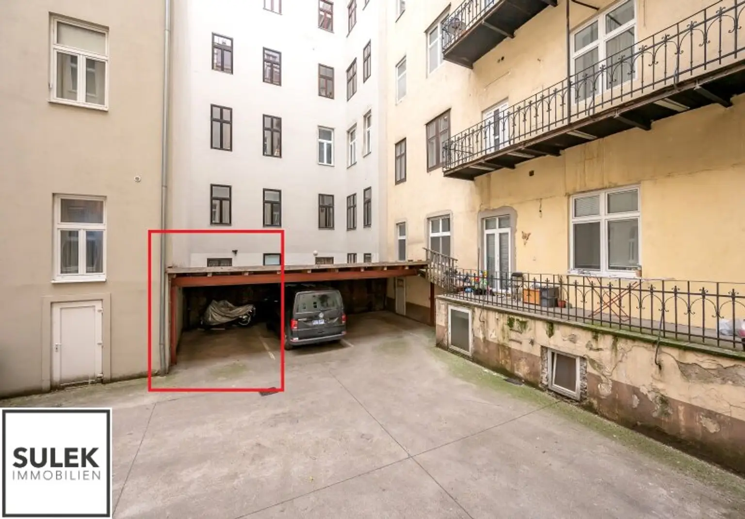 * Stellplatz im Haus (Carport - siehe Foto rote Markierung)