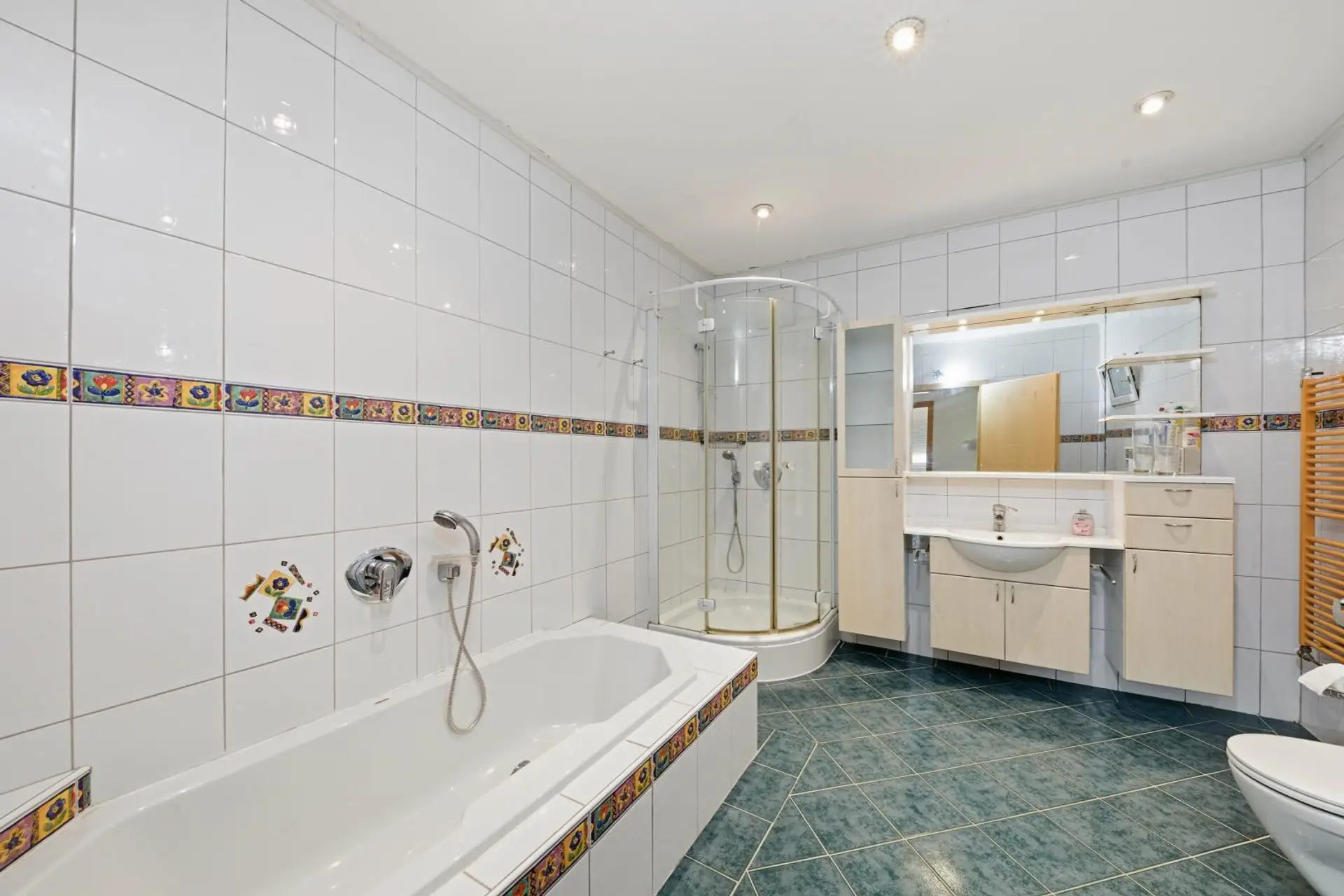 Heizung/Warmwasser: Brennwertgerät installiert 07/2013; Radiatoren; Brenner im Heizraum/Keller; Warmwasserspeicher 1000 Liter; System läuft über Heizungsanlage und Wärmepumpe. Badezimmer (DG), Vorraum (DG) und WC (OG) mit Fußbodenheizung