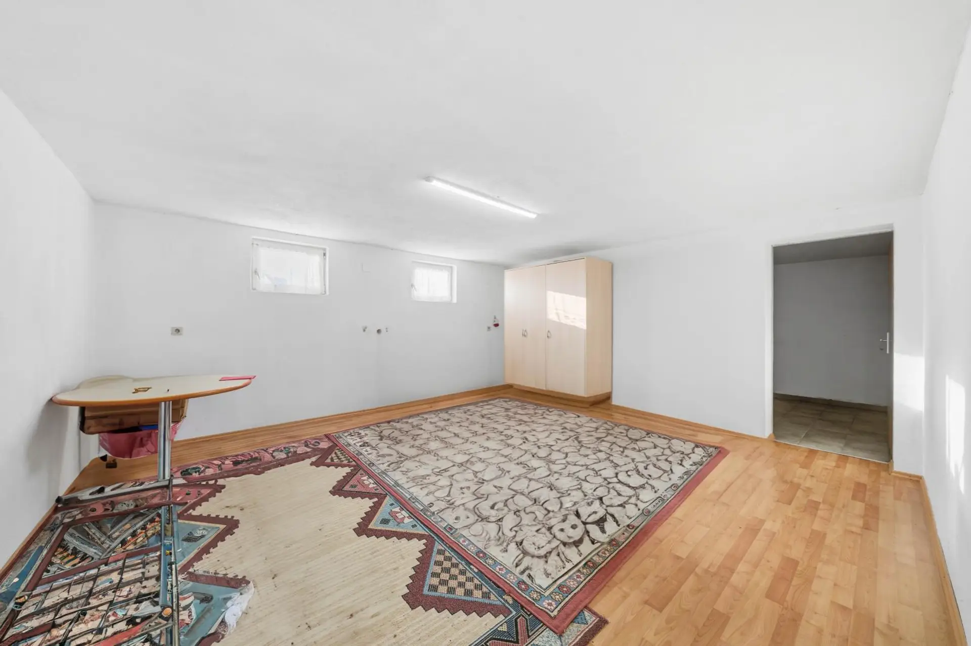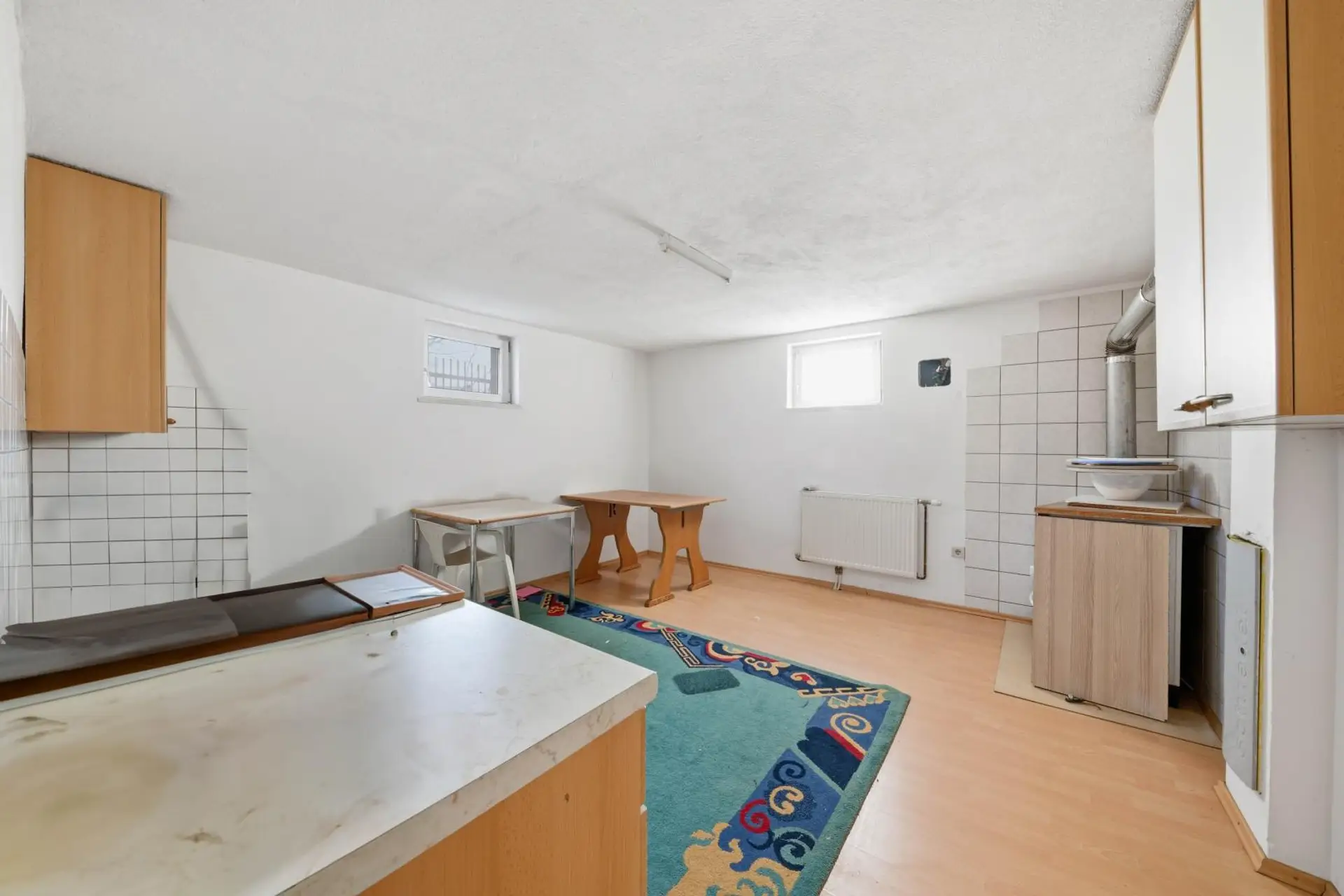 Das Kellergeschoss, über eine Verbindungstreppe vom Erdgeschoss oder den Garten erreichbar und gliedert sich mit ca 81,05 m² wie folgt auf: Waschküche, Raum 1, Raum 2, Gang, Technikraum, Waschküche. Ein Teil des Kellers wurde bisher als Wohnkeller genutzt.