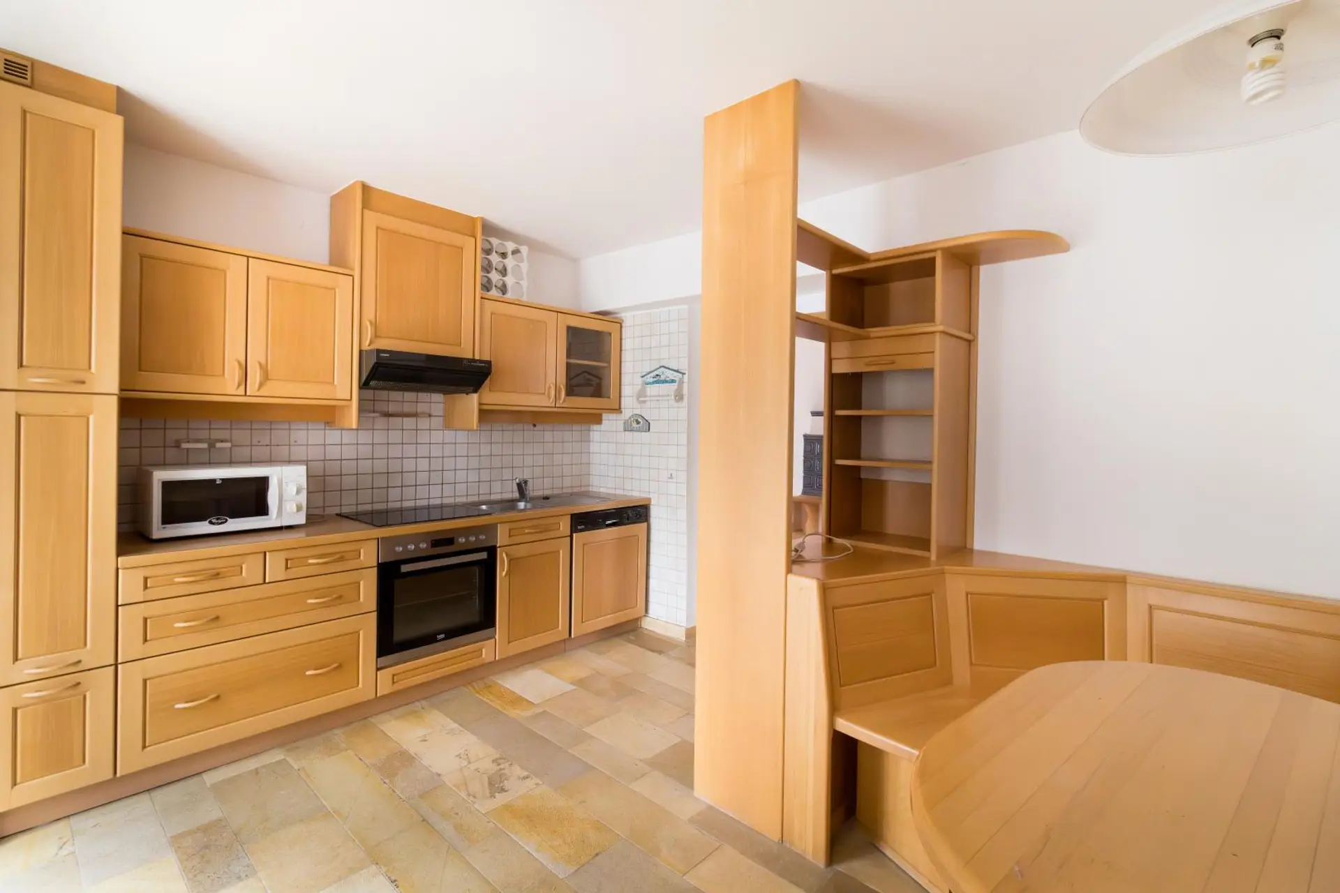 Die Raumaufteilung: Eine vollausgestattete Küche mit Essgruppe, ein gemütliches Wohnzimmer, ein Schlafzimmer sowie ein weiteres Zimmer, das sich ideal als Kinder-, Gäste- oder Arbeitszimmer eignet, schaffen ein angenehmes Wohngefühl. Das großzügige Badezimmer ist sowohl mit Badewanne als auch Dusche ausgestattet, ergänzt durch ein separates WC und mehrere Vorräume, die ausreichend Stauraum bieten.