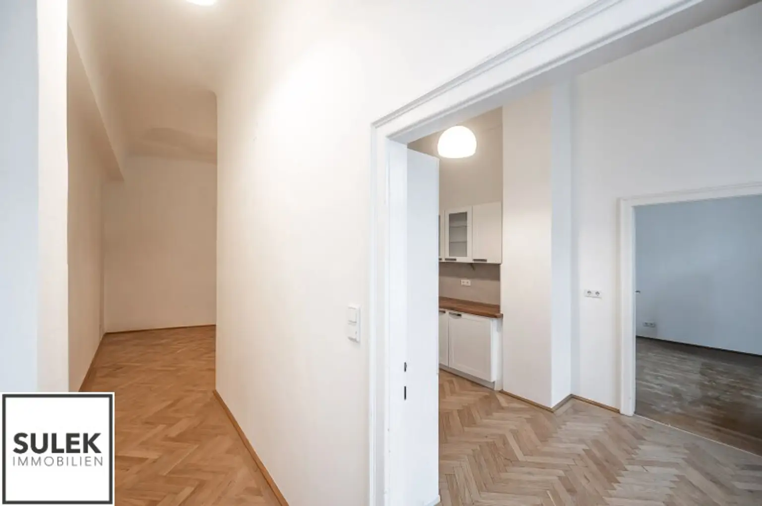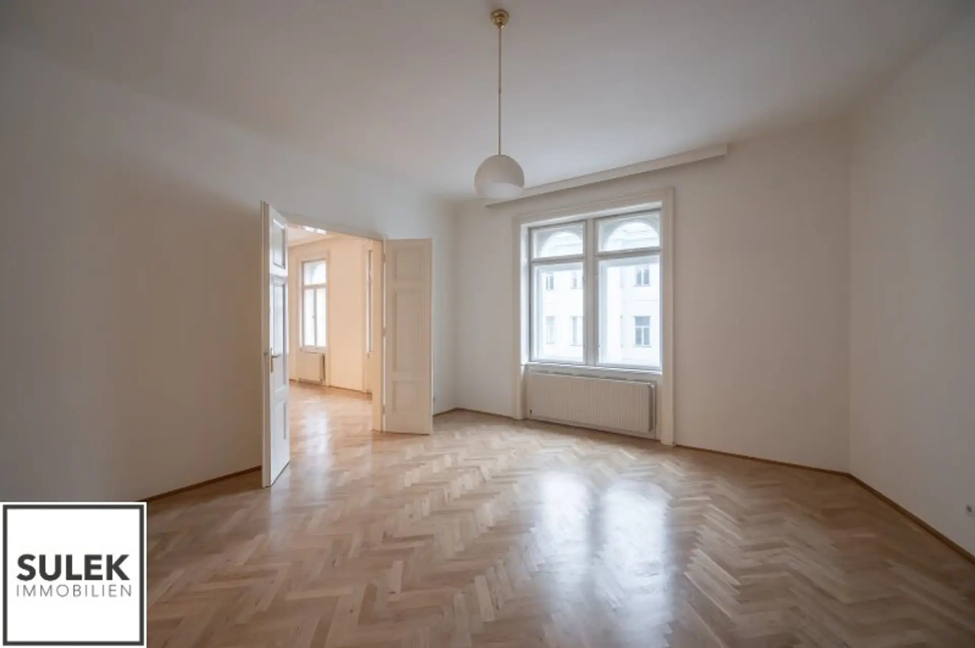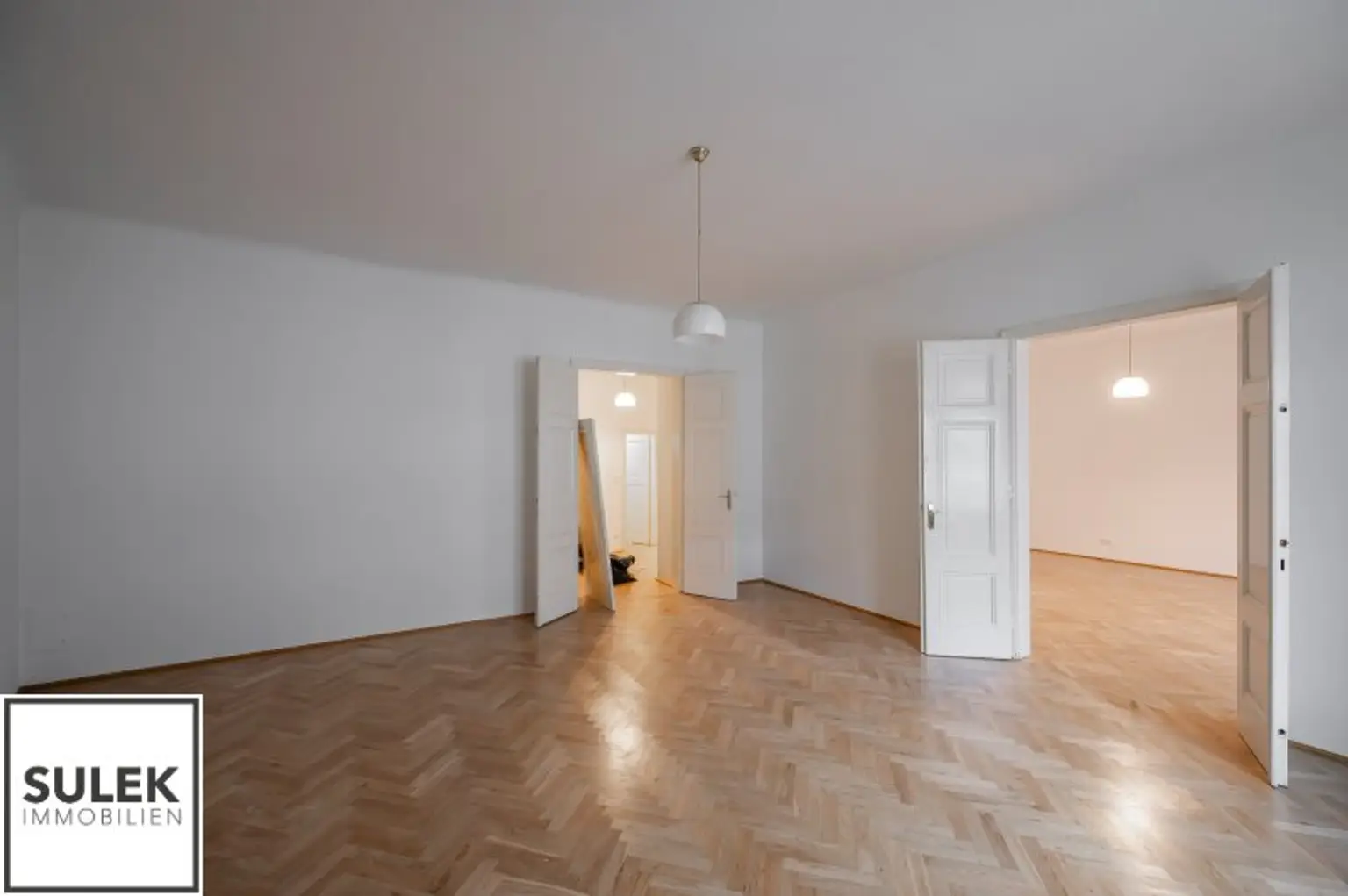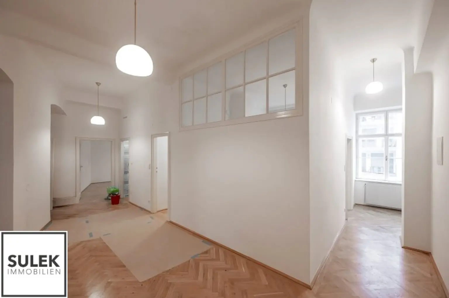 Zur befristeten Vermietung gelangt diese rd. 136m² große 3 Zimmer Wohnung im 3. Liftstock eines gepflegten Altbaus in der Margaretenstraße 25.