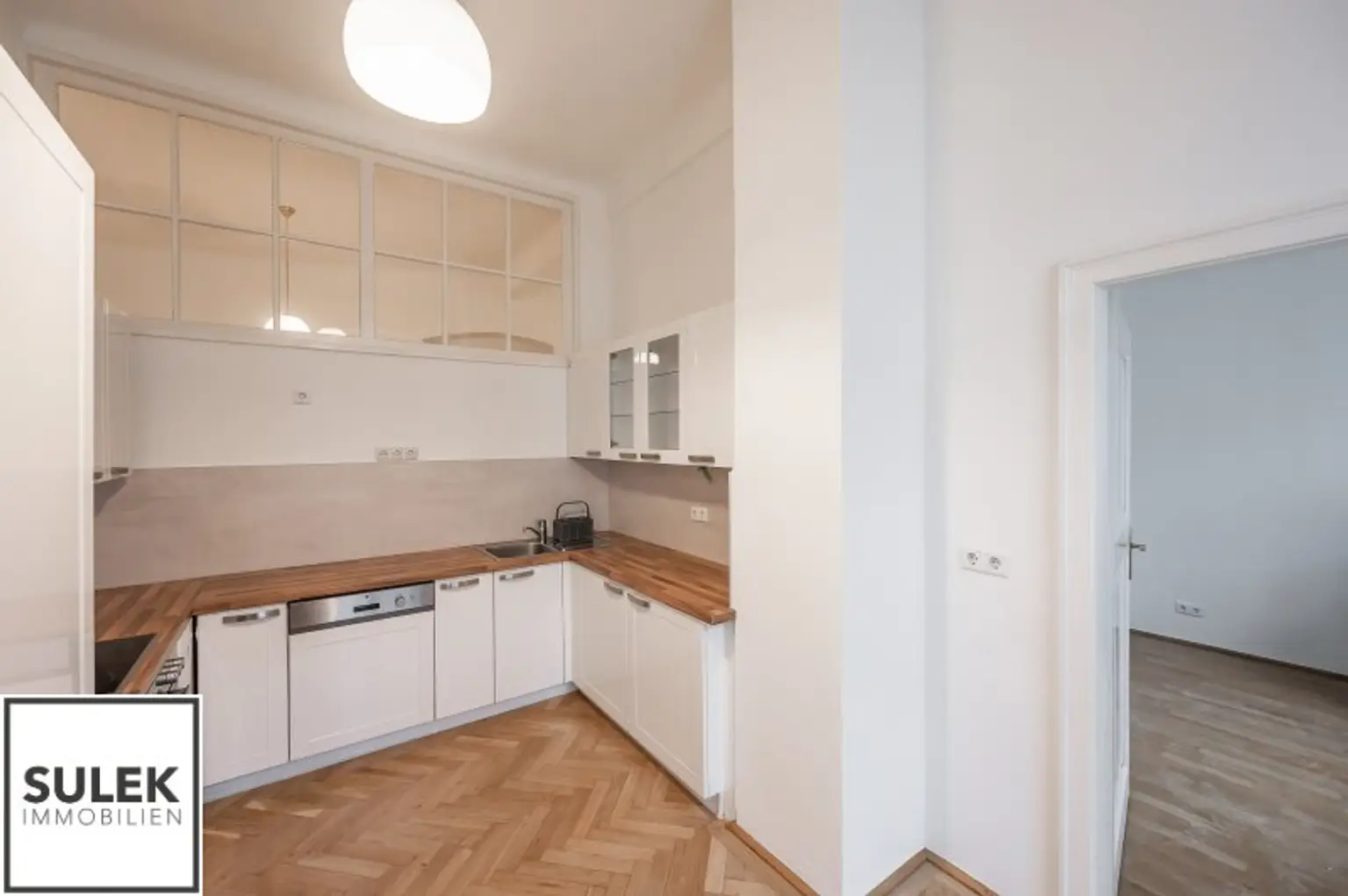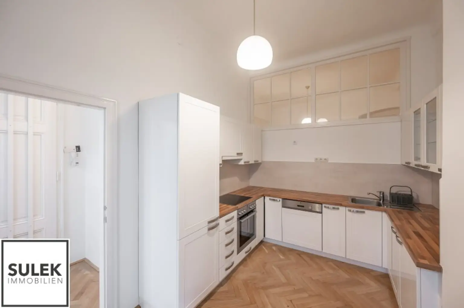 Die Wohnung befindet sich in einem sehr guten Zustand - frisch weiß ausgemalt und renoviert. Eine voll ausgestattete Küche mit einem großen Kühlschrank, Geschirrspüler, Dunstabzug, Backrohr und neuem Herd ist vorhanden. Außerdem verfügt die Wohnung über einen sehr stilvollen und hochwertigen Parkettboden. Zwei Zimmer mit einer Größe von jeweils rd. 30m² und 33m² sind straßen- und westseitig, zur Margaretenstraße hin, ausgerichtet. Das dritte Zimmer, sowie die Küche sind in den ruhigen Innenhof ausgerichtet. Weiters verfügt die Wohnung über einen großzügigen Vorraum, ein Badezimmer mit Badewanne, ein separates WC, sowie einen praktischen Abstellraum. Im Innenhof stehen Fahrradabstellplätze zur Verfügung.