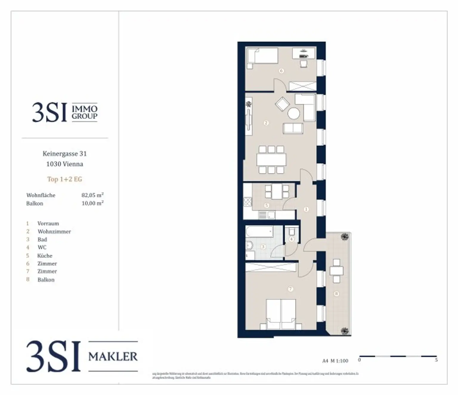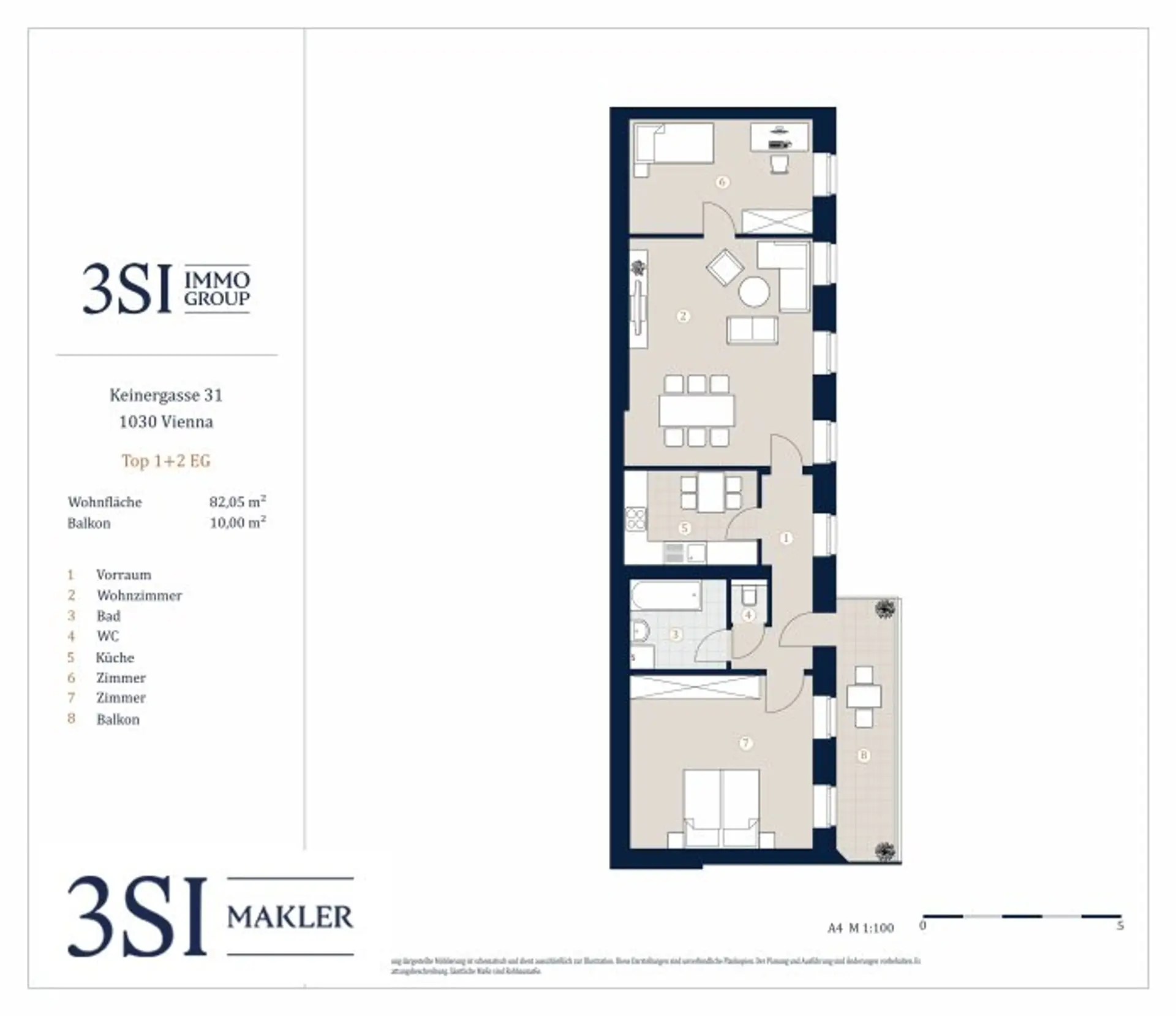 Bezugsfertige knapp 82 m² große 3-Zimmer Altbauwohnung in gepflegter Altbauliegenschaft gleich bei der U3-Station Kardinal-Nagl-Platz. Diese ist hofseitig Richtung Süden ausgerichtet und teilt sich wie folgt auf: