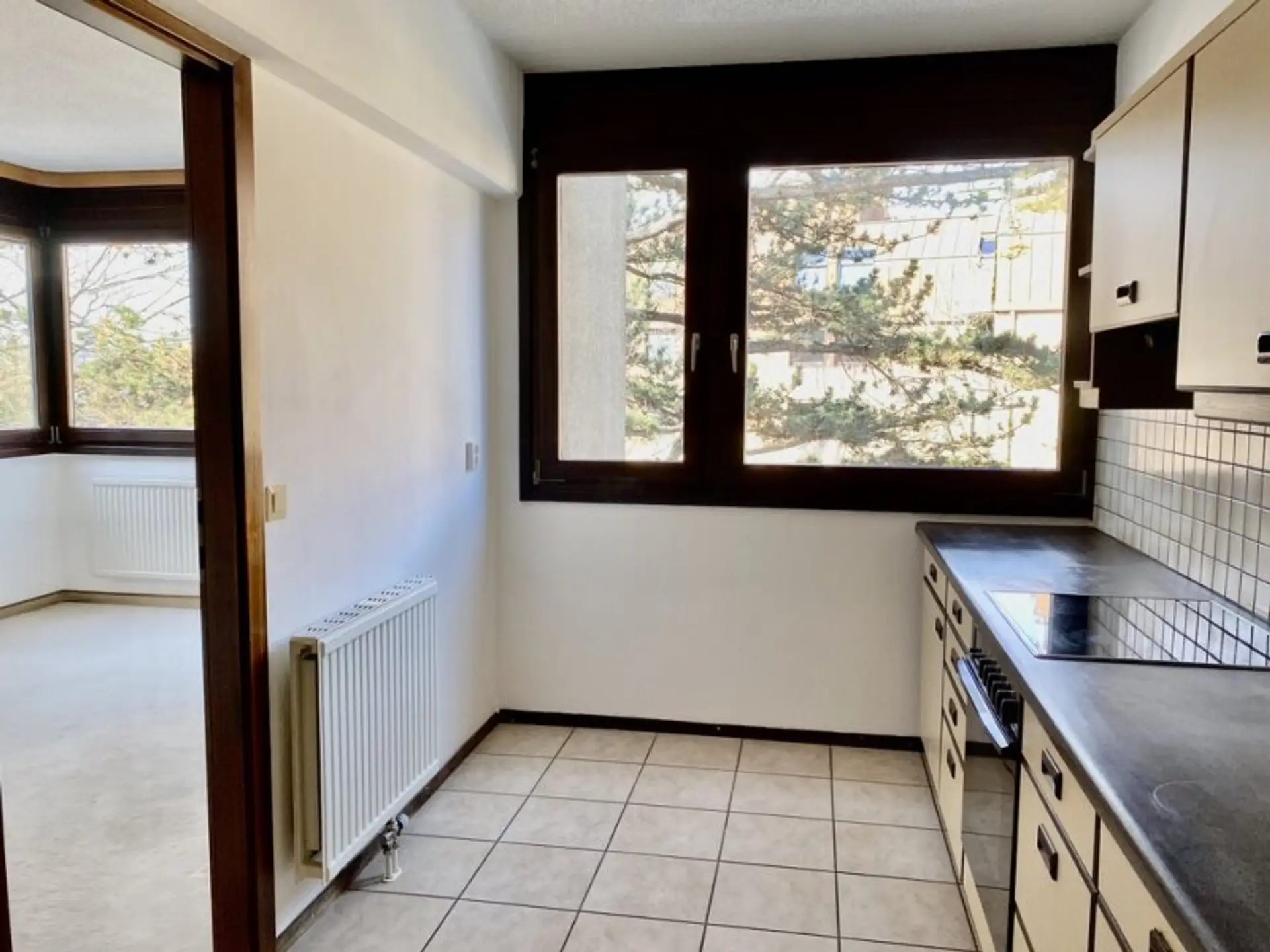 Die Wohnung befindet sich in einem gepflegten, jedoch etwas abgewohnten Zustand und ist entsprechend herzurichten. Dafür erhält man in herrlicher Grünlage eine großzügige, ruhige und sehr gut angelegte Wohnung mit zwei Terrassen und Stellplatz.