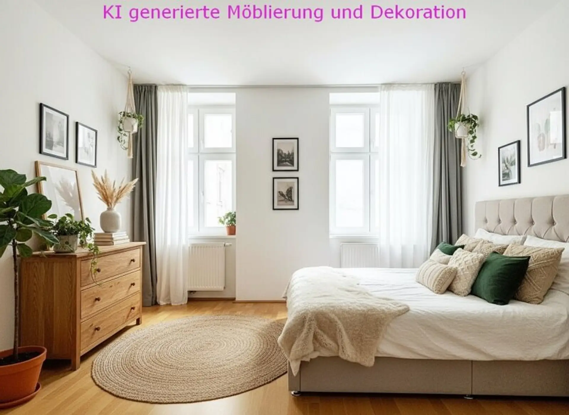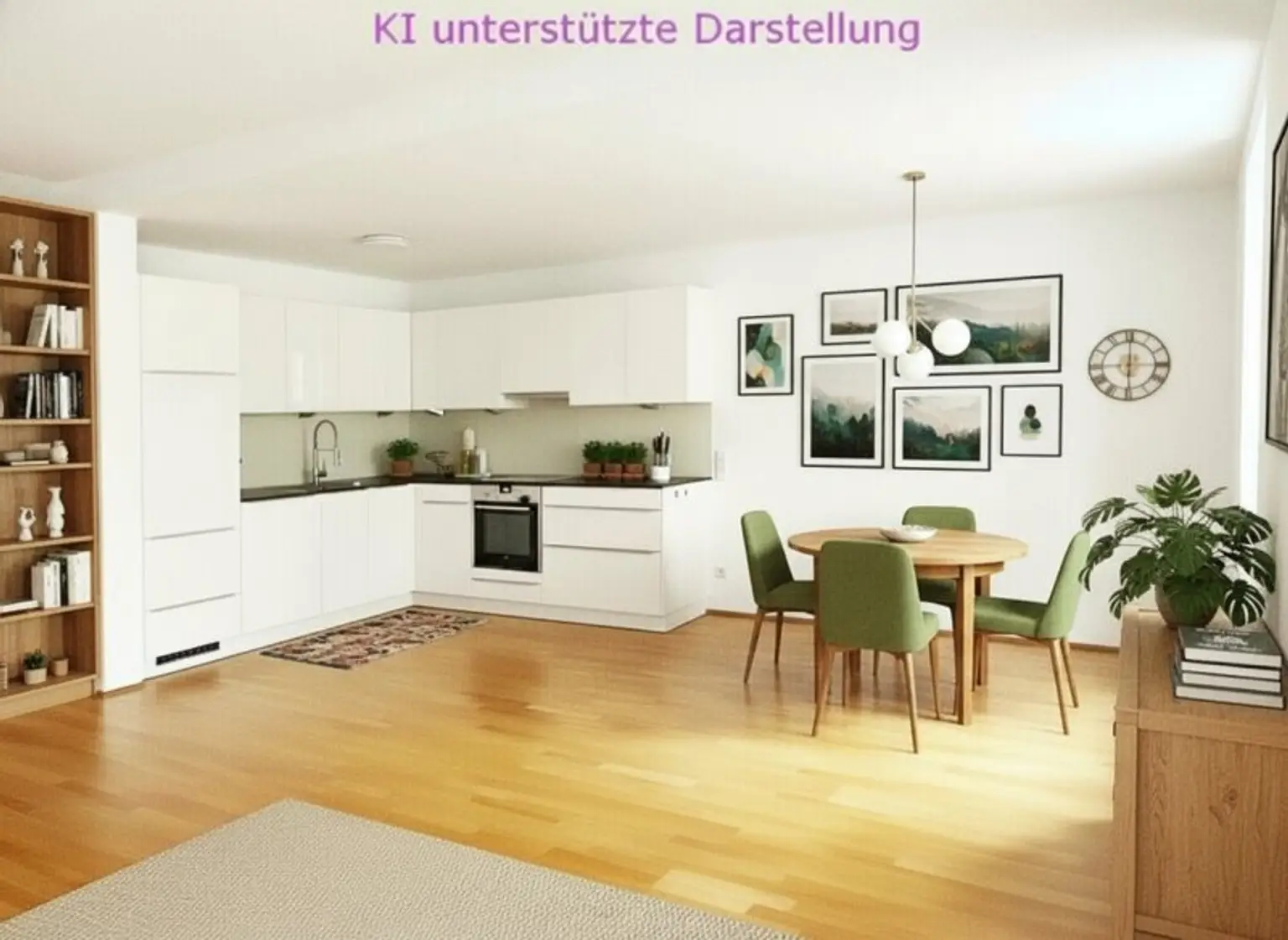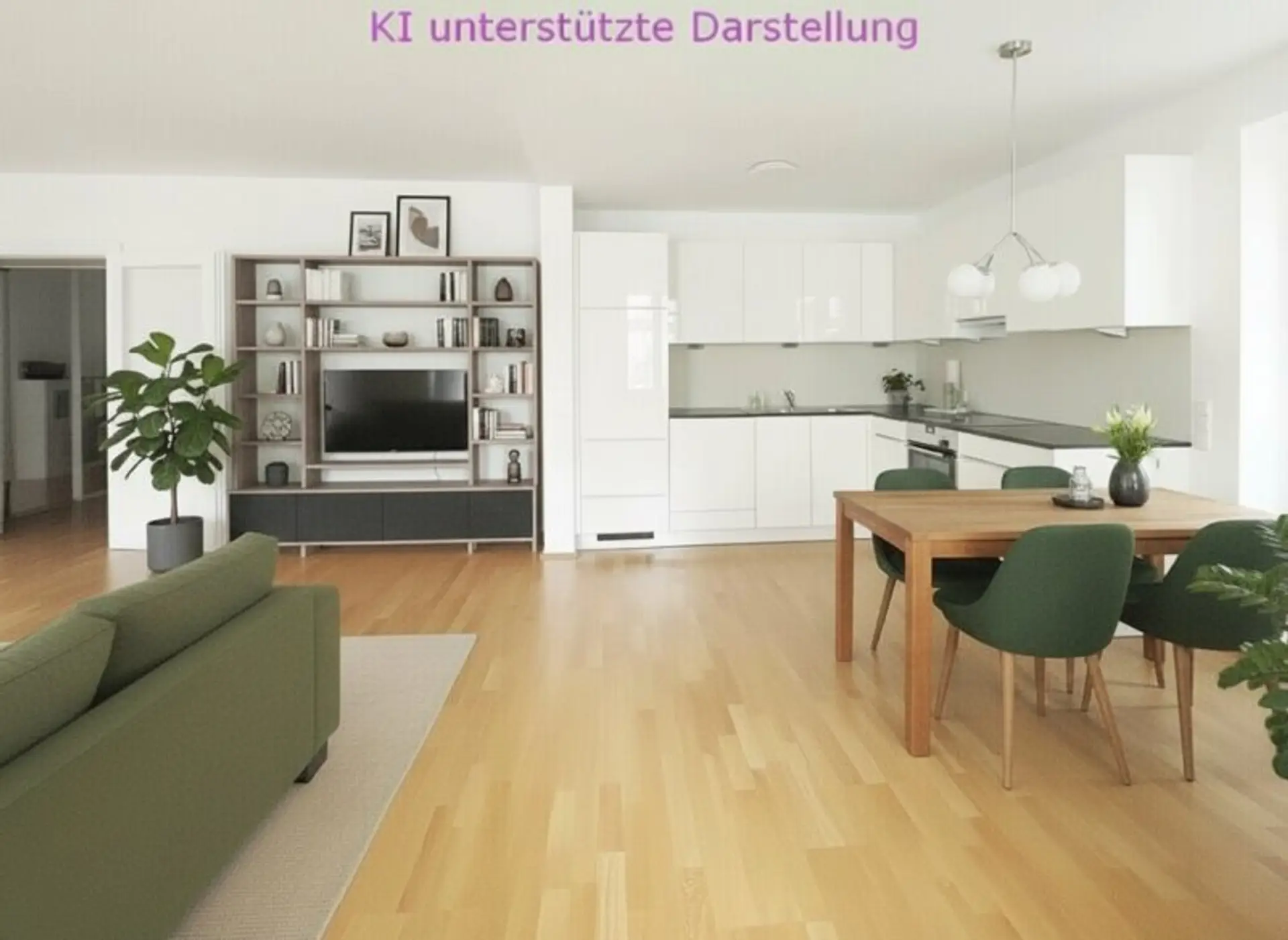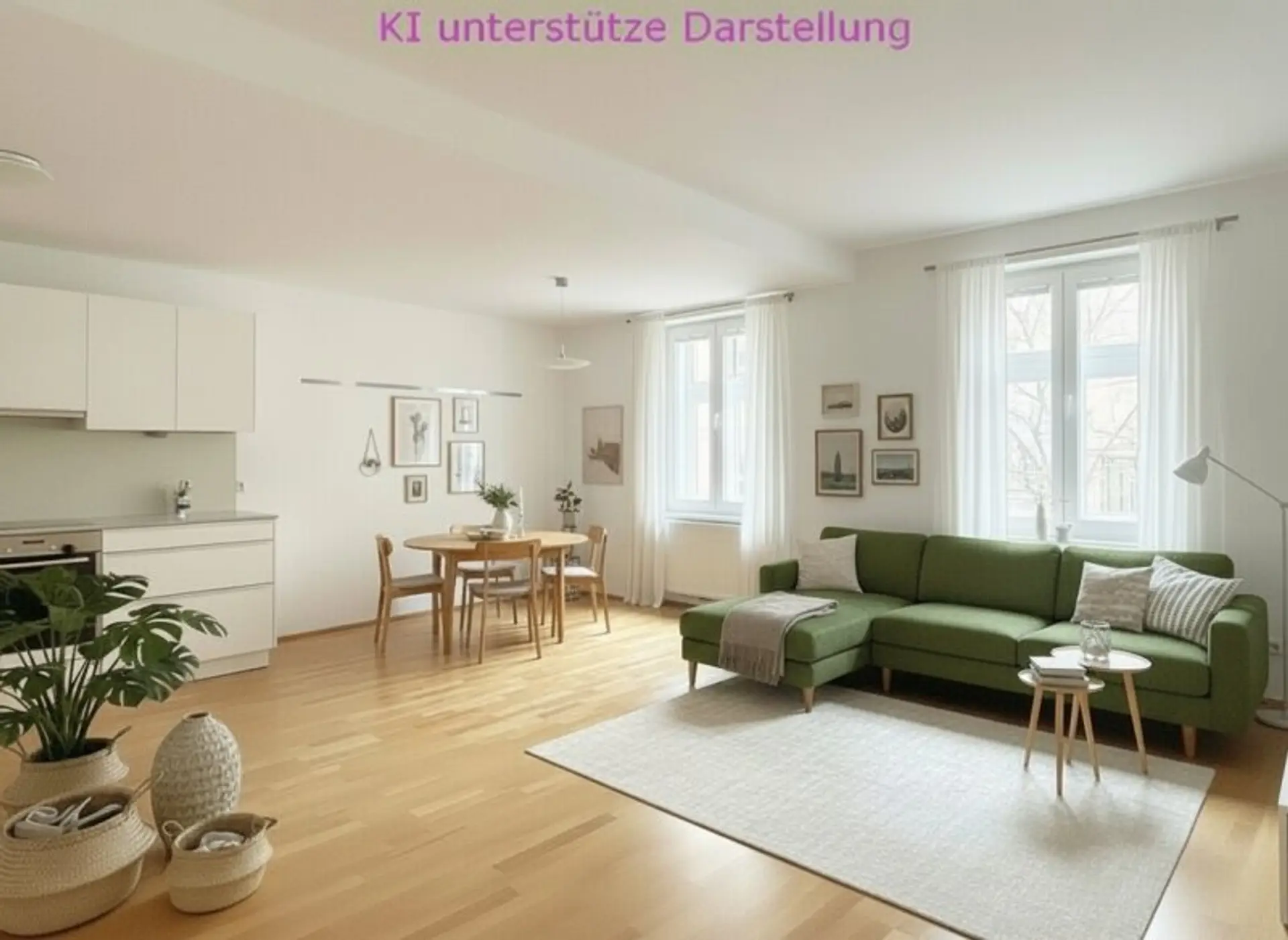 Die Wohnung verfügt derzeit über ein Schlafzimmer - die Abtrennung eines weiteren Zimmers von der großen Wohnküche wäre laut Architektin mit wenig Aufwand möglich, so dass die Wohnung auch als 3-Zimmer Wohnung genutzt werden könnte. Dazu wurden einige Fotos mit einer KI bearbeitet, die dies verdeutlichen sollen.