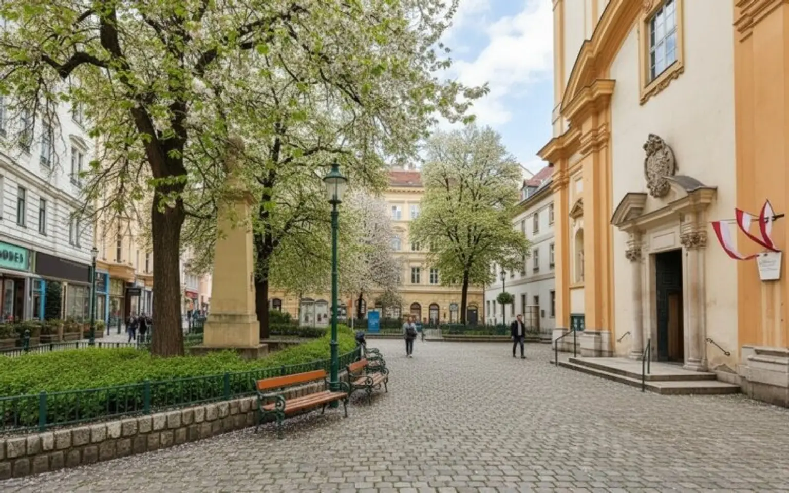 Die Lage im 9. Bezirk ist begehrt - das Servitenviertel lockt mit Kultur, Baudenkmälern, dem schönen Kirchplatz samt Wochenmarkt, exklusiven Geschäften und vielfältiger Kulinarik.
