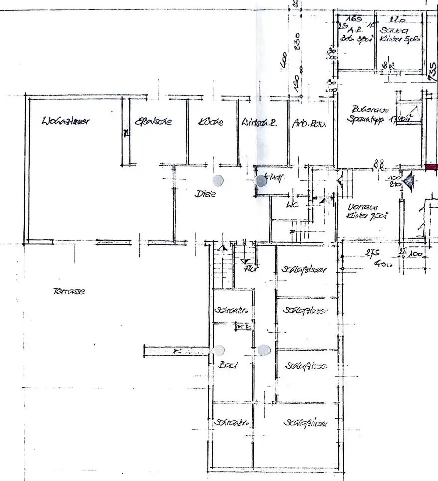 - Ursprungsbungalow Baujahr 1967 (L-Form), Zubau 1972