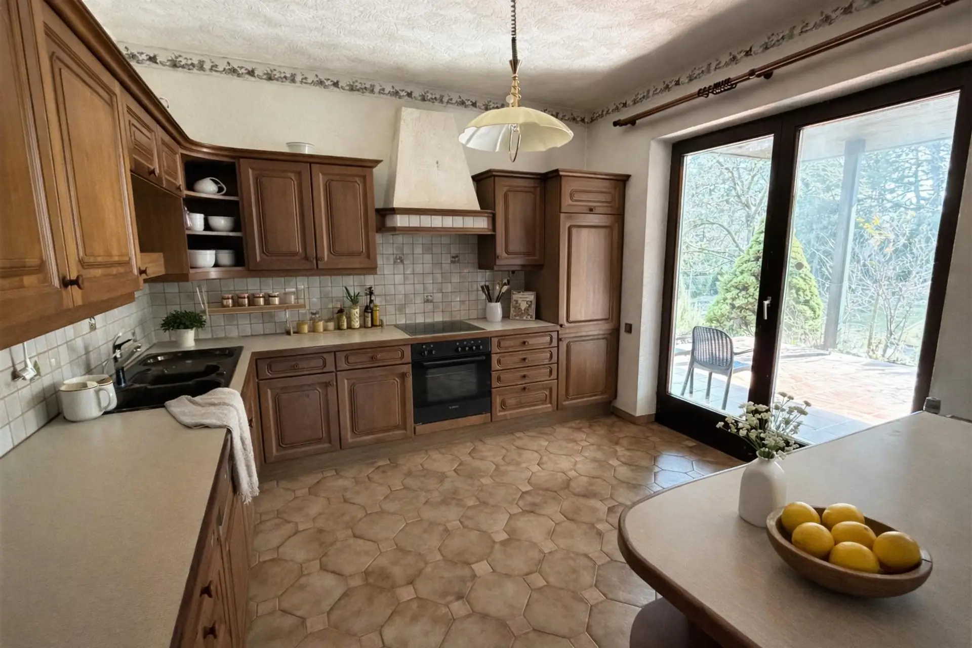 Die Küche ist funktional angeordnet und bietet ausreichend Platz für eine moderne Gestaltung.