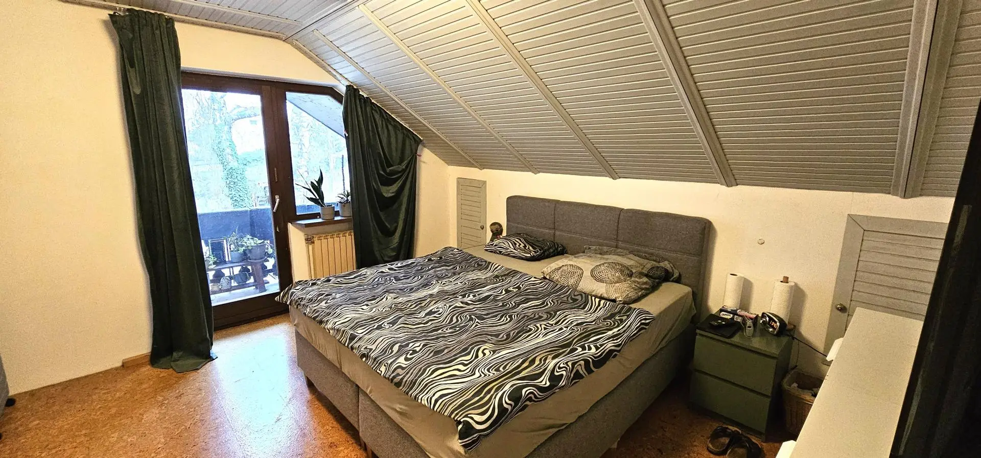 Der Wohnkomfort vom Schlafzimmer wird wegen des überdachten Balkons erhöht.