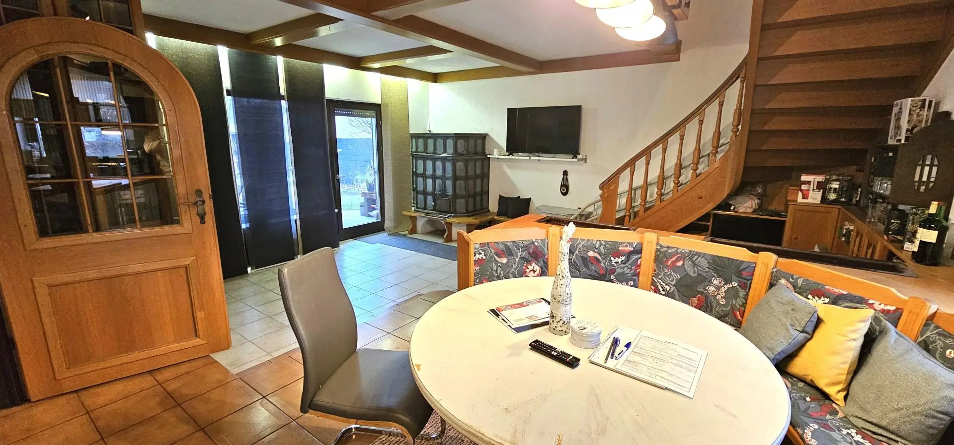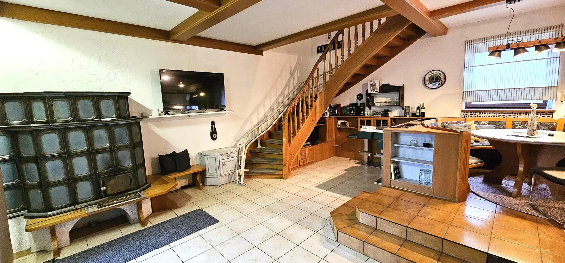 Ein ansehnlicher und nützlicher Kachelofen ist ein weiteres Highlight dieser Räumlichkeit.
