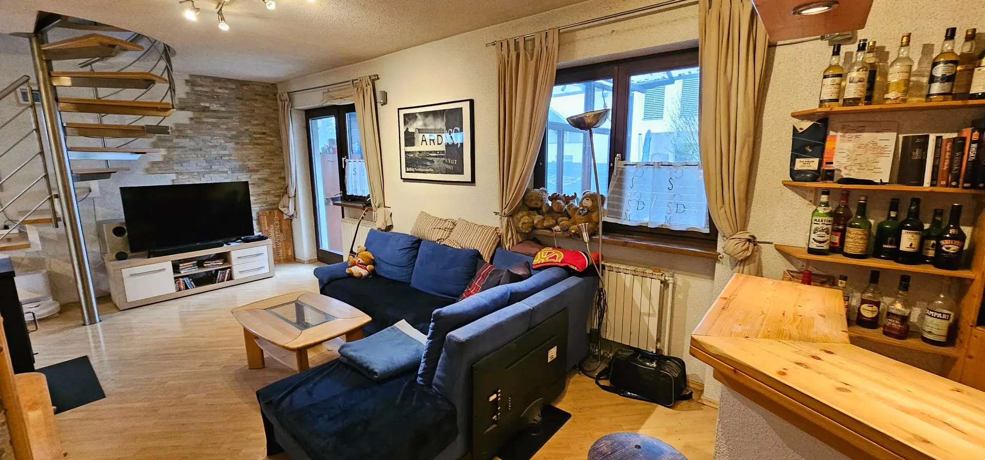 Das Wohnzimmer besticht durch ihre offene Bauweise mit der Küche.