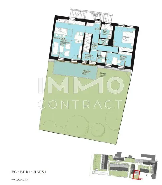 * Private Freiflächen bei allen Einheiten: Gärten, Terrassen, Balkone oder Loggien