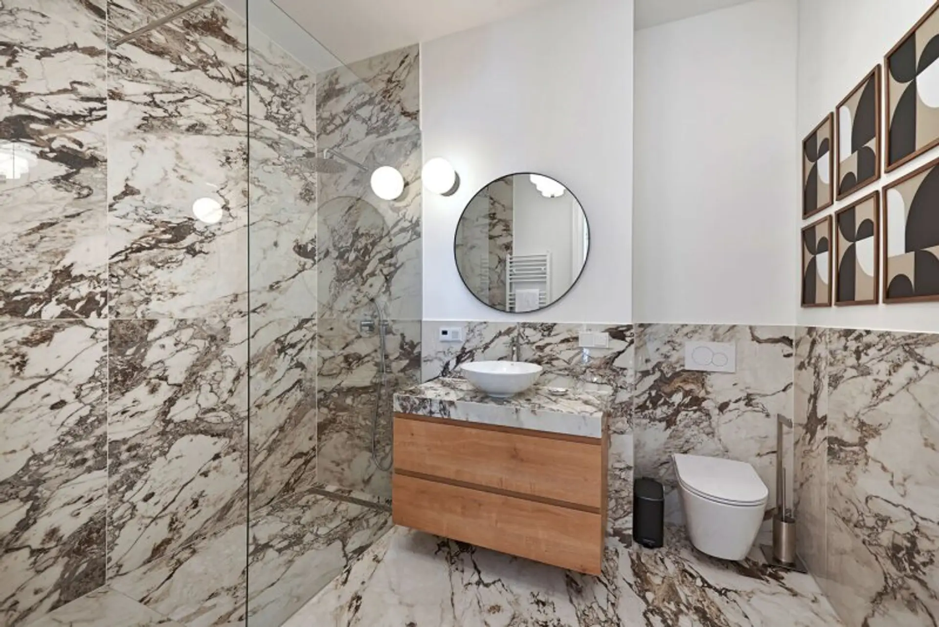 Die drei Badezimmer sind als private Rückzugs- und Wellnessbereiche gestaltet und mit Duschen sowie einer Badewanne ausgestattet. Hochwertige Materialien und ein durchdachtes Raumkonzept sorgen für Komfort auf hohem Niveau.
