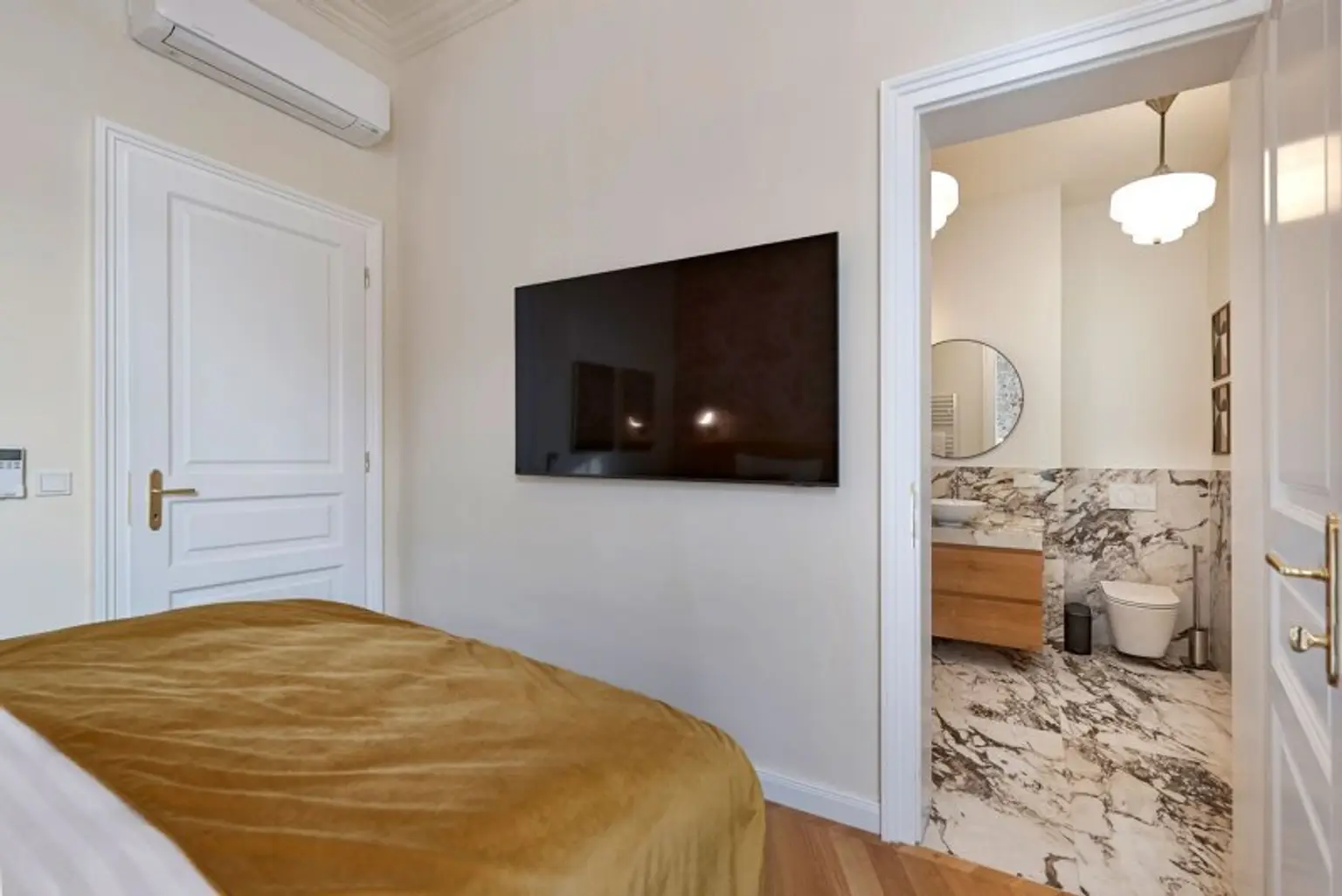Die Wohnung verfügt über vier großzügige Schlafzimmer, jeweils mit komfortablen Doppelbetten. Der intelligente Grundriss ermöglicht sowohl Privatsphäre als auch großzügige Gemeinschaftsbereiche und eignet sich ideal für Familien oder größere Gruppen.