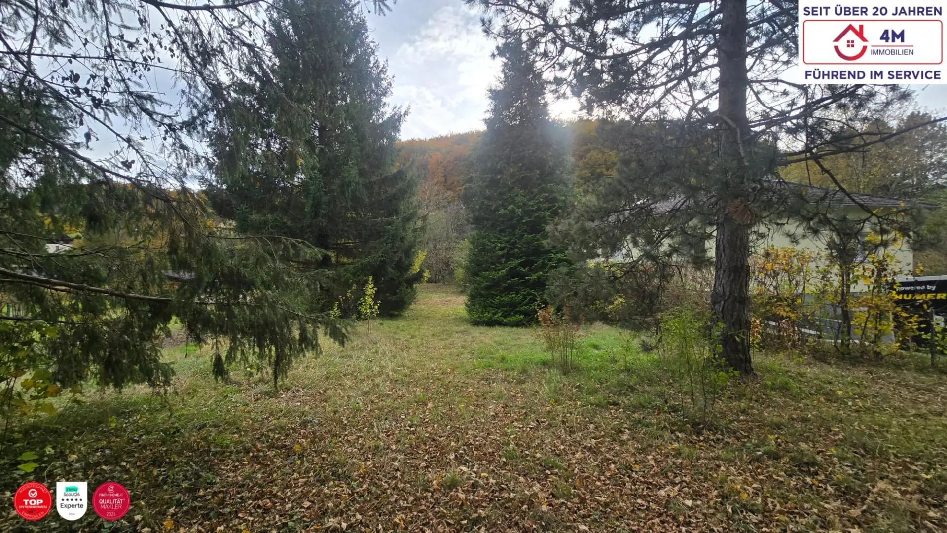 Das Grundstück besticht durch seine ruhige, naturnahe Umgebung und eine idyllische Südhanglage mit schönem, altem Baumbestand.