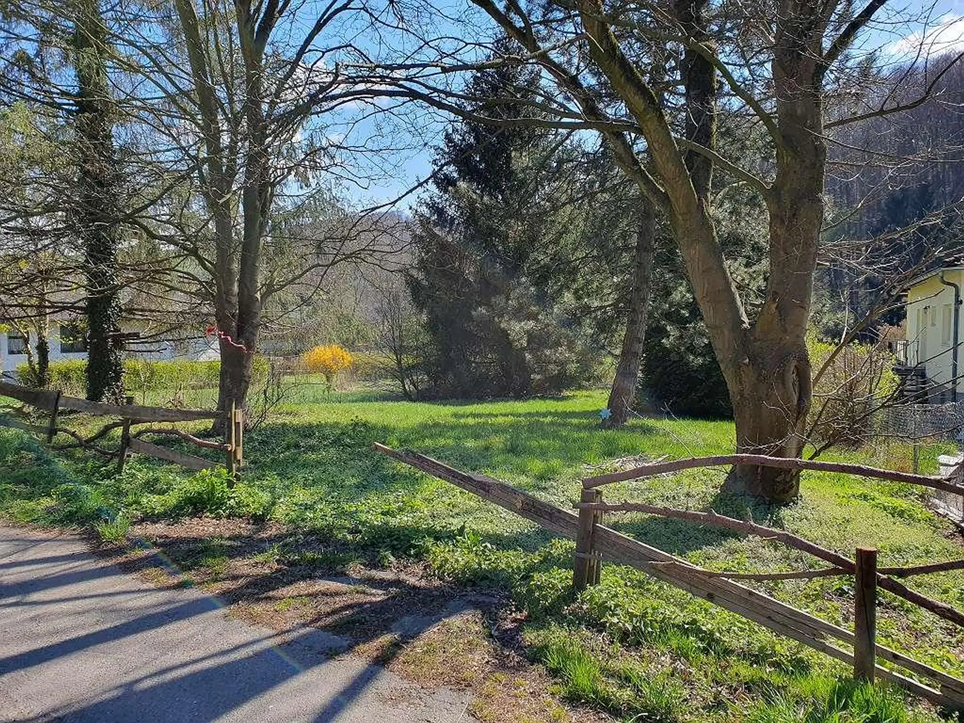 Der hintere Teil des Grundstücks grenzt an einen kleinen Bach und eröffnet einen unverbaubaren Blick ins Grüne – perfekt für all jene, die ihr zukünftiges Zuhause mit direkter Ausrichtung zur Natur gestalten möchten. Von der Straße kaum wahrnehmbar, genießen Sie hier Ruhe, Privatsphäre und eine besondere Atmosphäre.