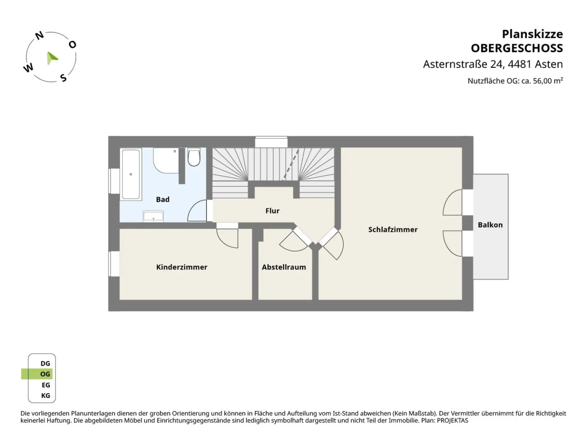 Das Haus befindet sich in ruhiger und dennoch zentraler Lage von Asten. Einkaufsmöglichkeiten, Schulen, Kindergarten sowie öffentliche Verkehrsmittel sind in wenigen Minuten erreichbar. Die Nähe zur Autobahn A1 ermöglicht eine rasche Anbindung nach Linz und Enns - ideal für Berufspendler.