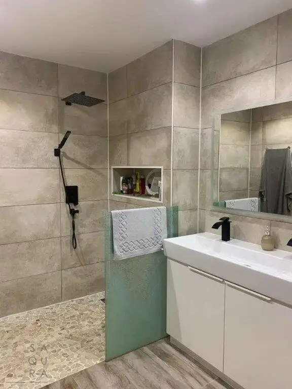 •Badezimmer mit Fenstern, Badewanne & Dusche