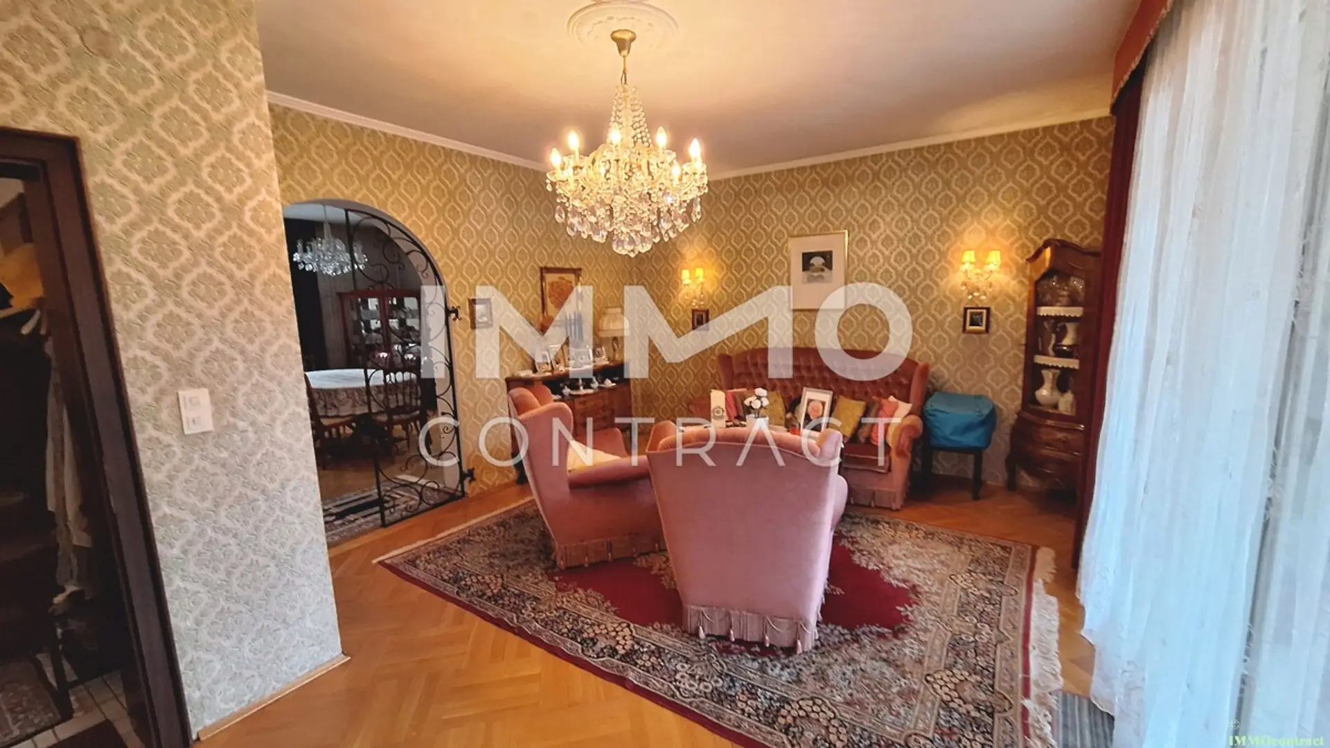 Bereits beim Betreten des Hauses empfängt Sie ein großzügiger Vorraum, von dem aus alle Bereiche des Erdgeschosses bequem erreichbar sind. Rechter Hand befinden sich die Küche, ein praktischer Abstellraum, das WC sowie ein gemütliches Wohnzimmer. Auf der linken Seite gelangen Sie in ein weiteres Wohnzimmer, das als verbindendes Element in das geräumige Esszimmer führt. Dieses bietet reichlich Platz für gesellige Stunden mit Familie und Freunden und ist durch ein stilvolles schmiedeeisernes Tor optisch besonders hervorgehoben.