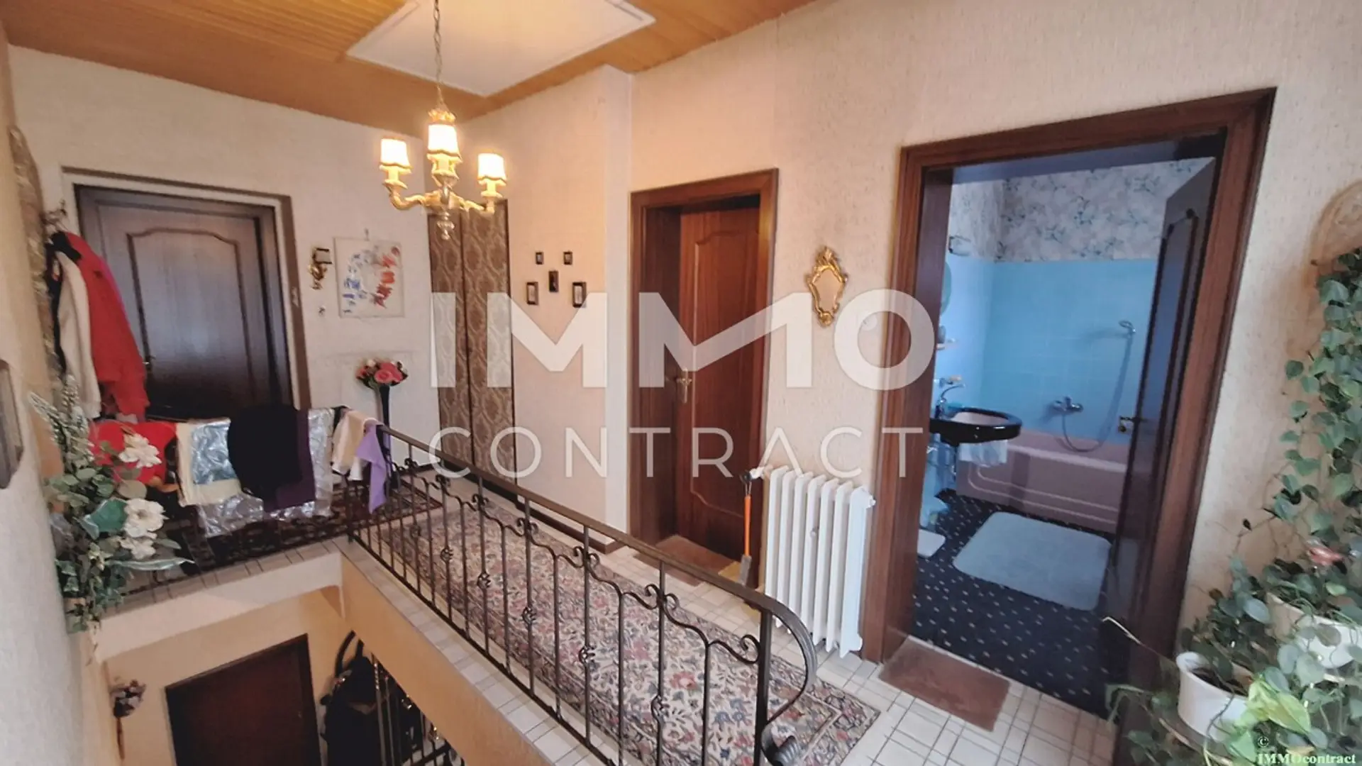 Über die Treppe im Vorraum erreichen Sie das Obergeschoss. Hier erwarten Sie ein Badezimmer mit Badewanne und WC, ein Schlafzimmer, eine Bibliothek, ein weiteres Zimmer sowie ein Wohnzimmer mit direktem Ausgang auf den großzügigen Balkon. Zusätzlich steht ein weiterer, kleiner Balkon zur Verfügung – perfekt, um die Sonne zu verschiedenen Tageszeiten zu genießen.
