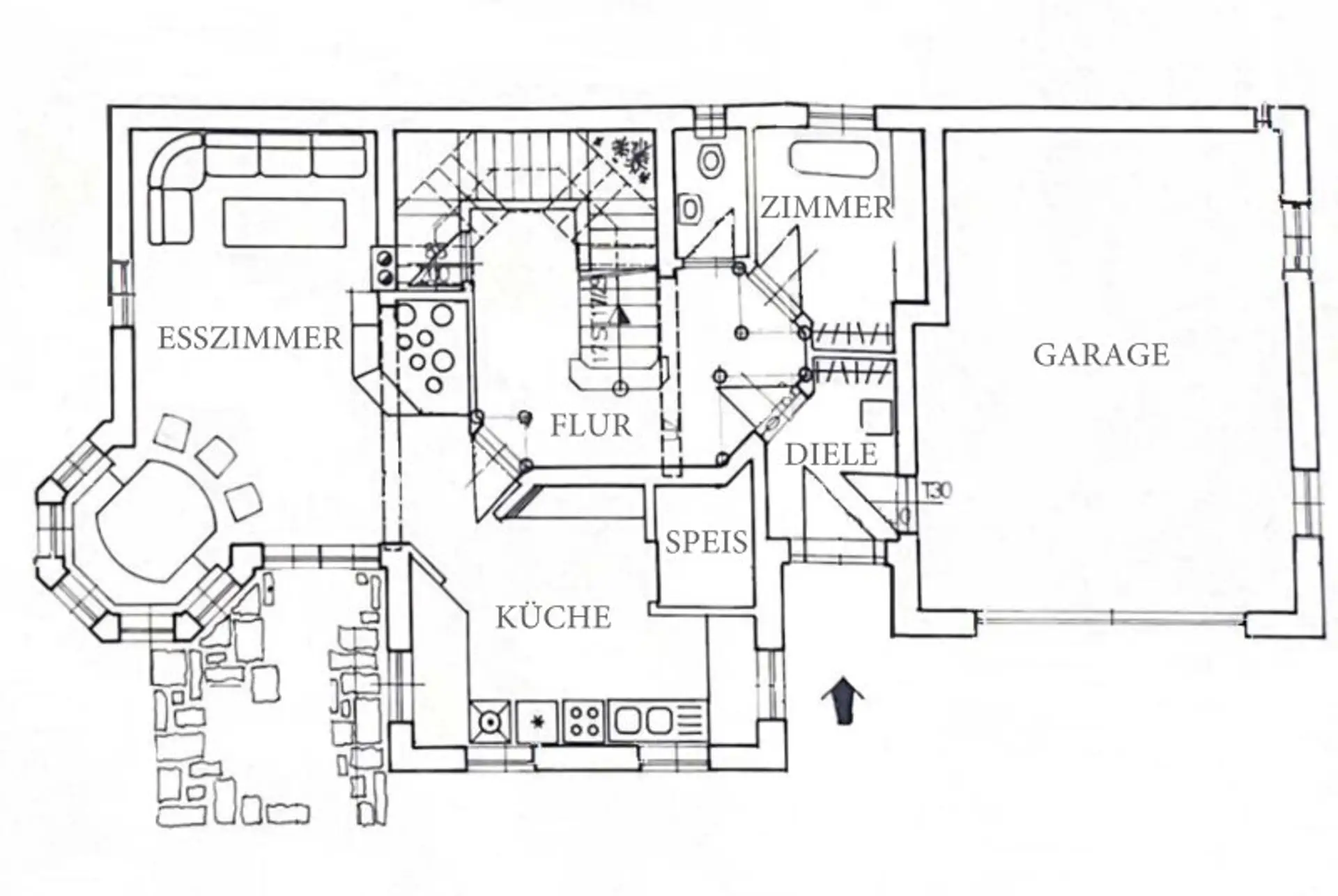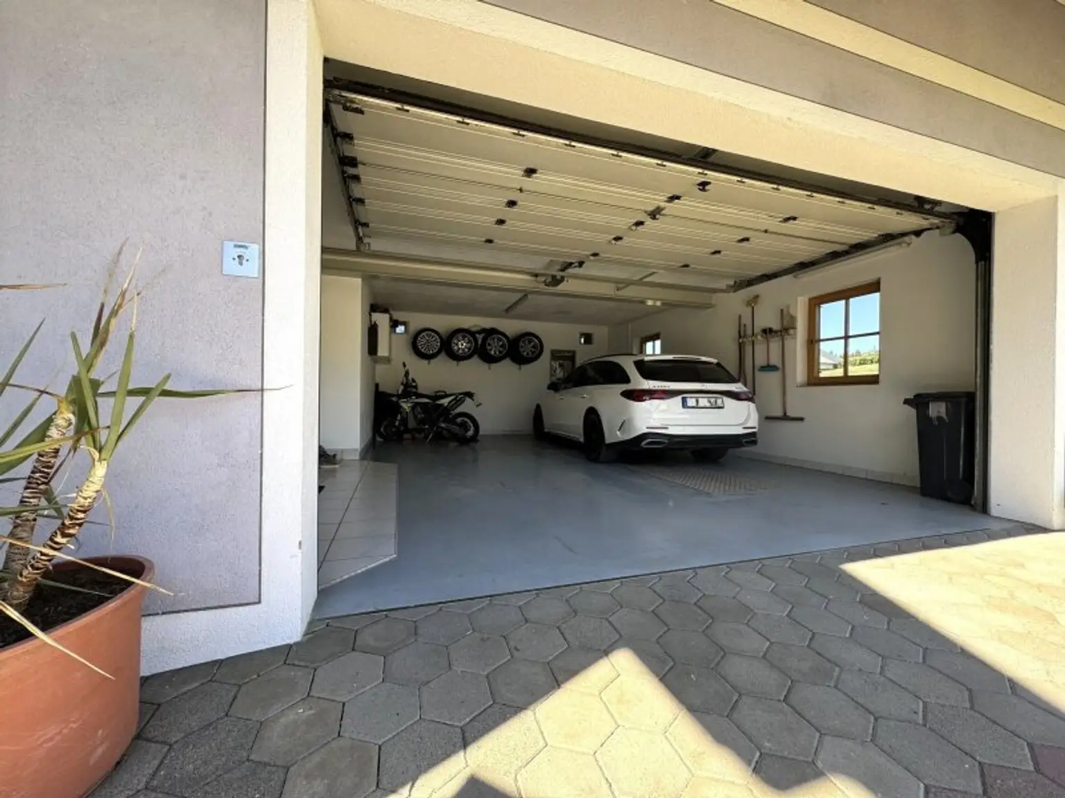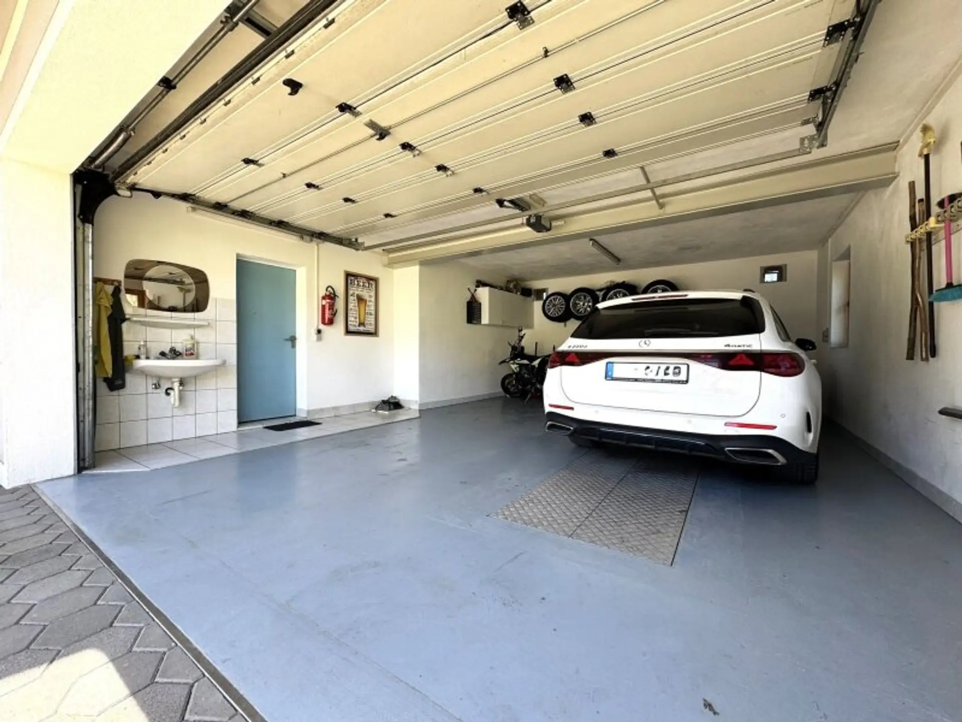 * Garage für 2 PKWs mit Sektionaltor; Waschmöglichkeit, Druckluftversorgung aus dem Keller, direkter Zugang in den Wohnbereich über die Diele