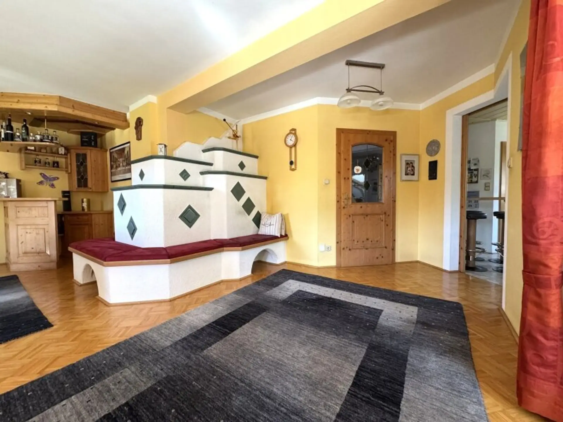 * in diesem Bereich befindet sich der mit einer Ofenbank ausgestattete Kachelofen