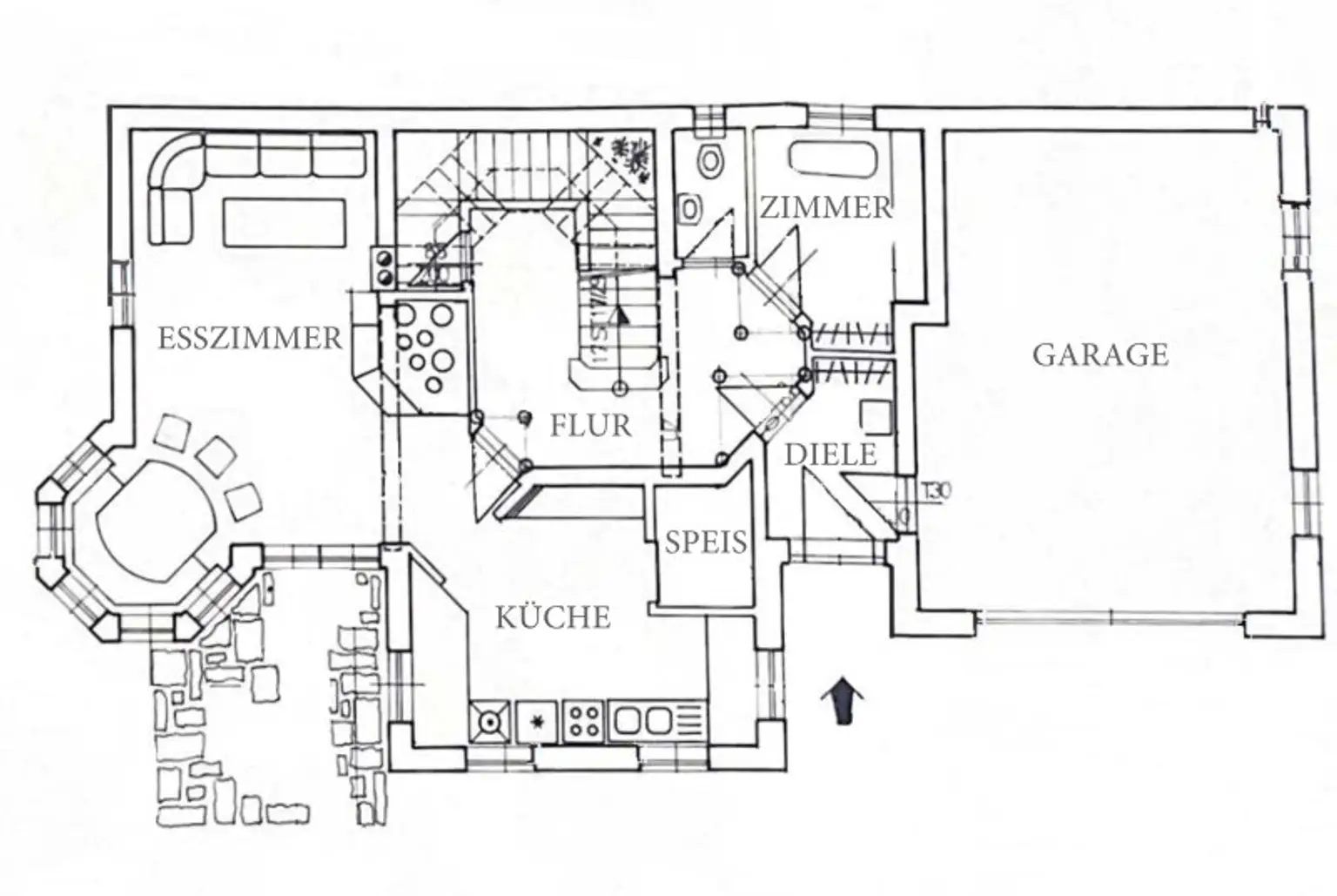 * Großer Wohn-/Ess-/Küchenbereich (inkl. Speis) mit einer Erker für den Familienesstisch