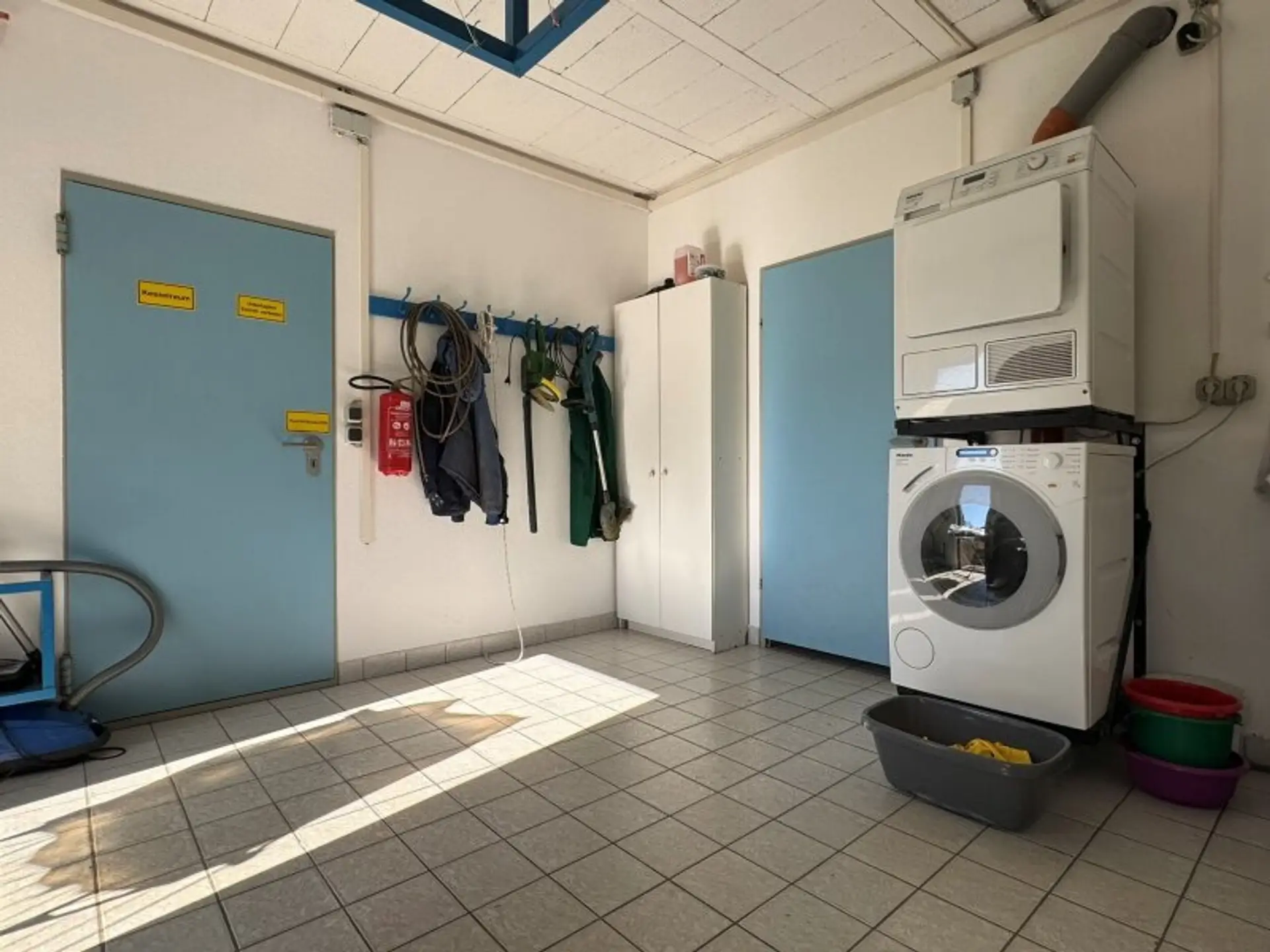 * Großzügiger Waschraum für Waschmaschine und Trockner