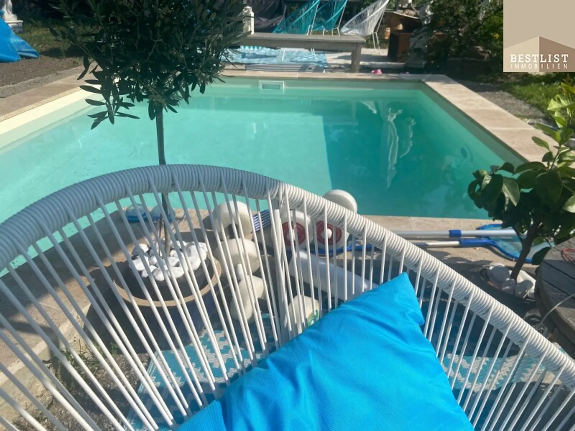 Der großzügige Garten ist ein echtes Highlight: Ein gemauerter Pool sorgt an heißen Tagen für Erfrischung, die Gartenanlage lädt zum Entspannen, Spielen oder Gärtnern ein.
