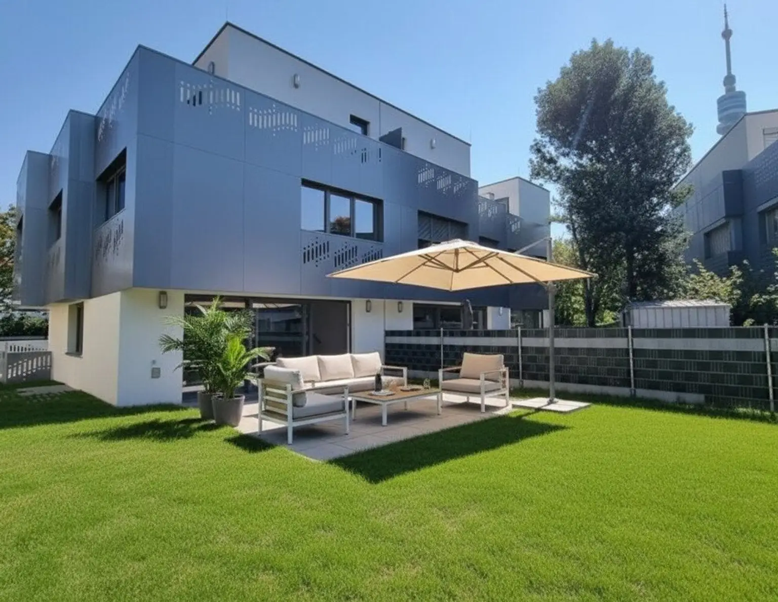 Zur Vermietung gelangt ein in 2022 neu errichtetes Eckreihenhaus in einer ruhigen Sackgasse nahe dem Donaupark. Das Haus bietet viel Platz auf 4 Ebenen, verfügt über einen schönen Garten und 2 Abstellplätze im Freien. I…