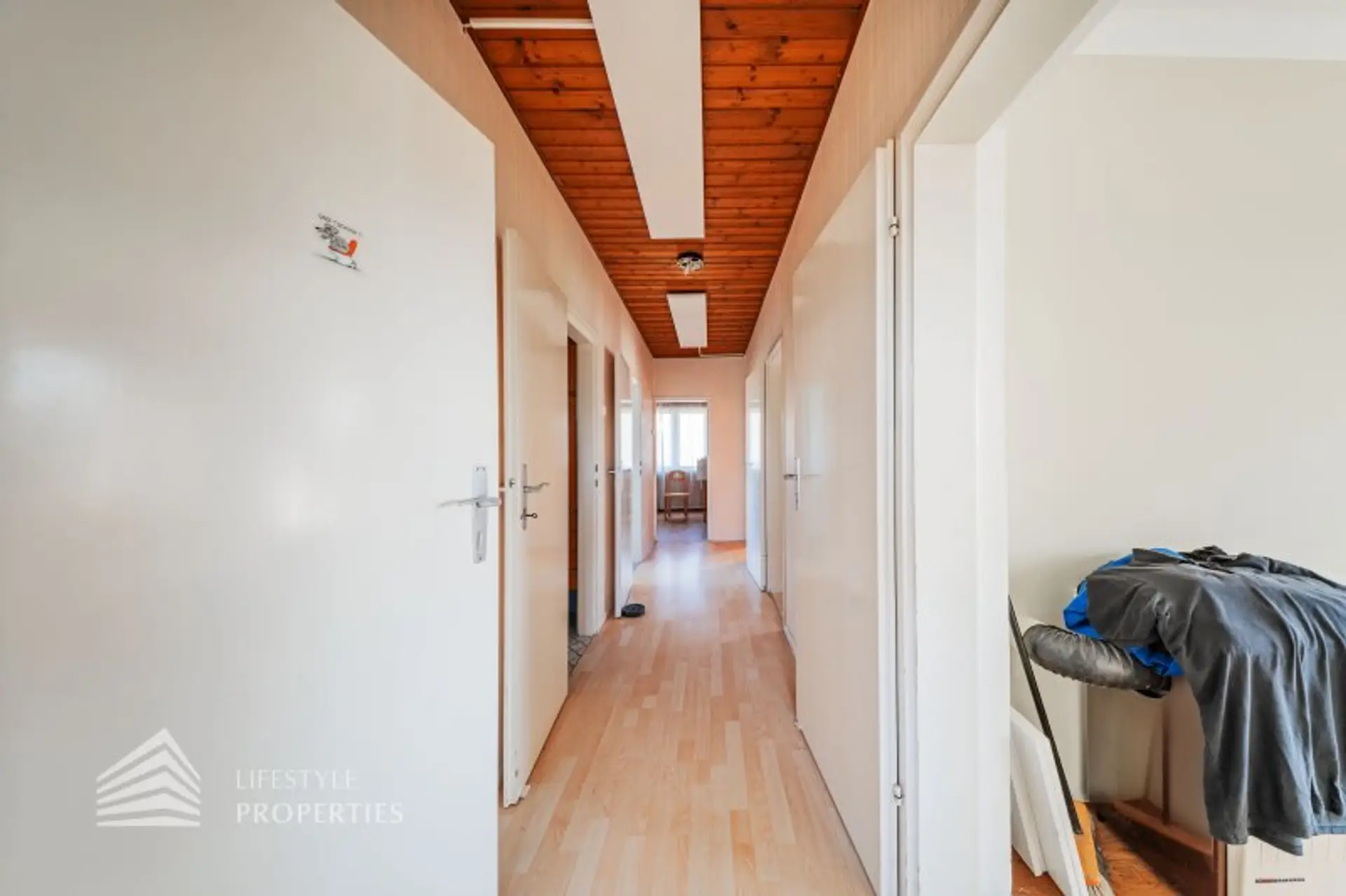 Das Haus erstreckt sich über zwei Wohnebenen mit einem Erdgeschoss von ca. 75 m² und einem Dachgeschoss von ca. 72 m². Ergänzt wird das Raumangebot durch ein überwiegend unterkellertes Untergeschoss mit etwa 51 m². Die Raumaufteilung ist flexibel und ermöglicht sowohl die Nutzung als Einfamilienhaus als auch als Mehrgenerationen-Lösung. Insgesamt stehen sechs Zimmer sowie ein Gästezimmer zur Verfügung, wodurch große Familien, Home-Office-Bedürfnisse problemlos Platz finden. Eine Sauna rundet das Angebot optimal ab.