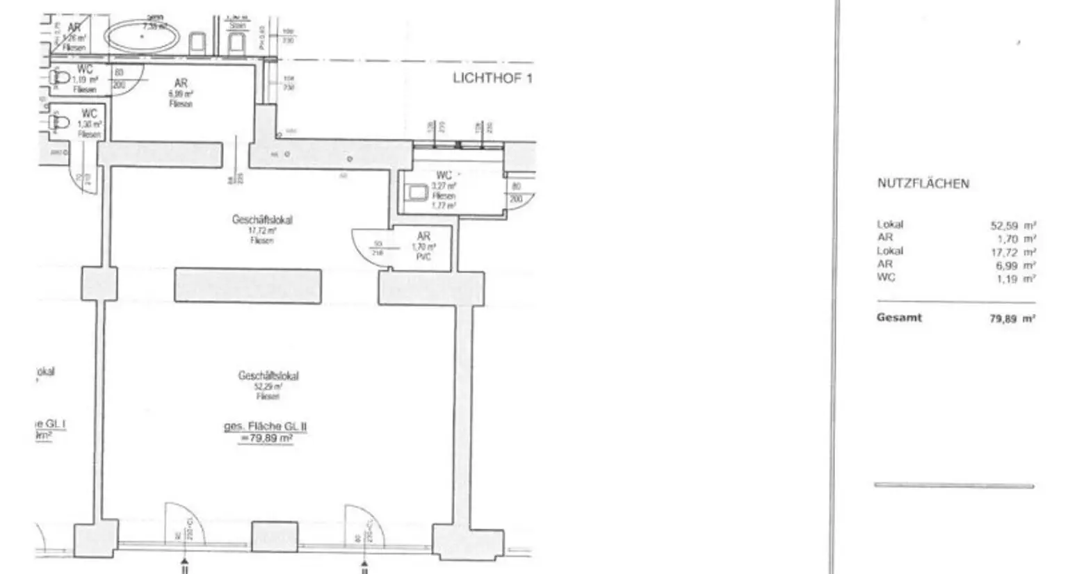 Das Lokal befindet sich in einem im Jahre 1900 erbauten Gebäudes und erstreckt sich auf eine Fläche von ca. 80 m². Die Geschäftsfläche teilt sich auf in den Hauptraum, 2 Abstellräume, sowie ein WC.