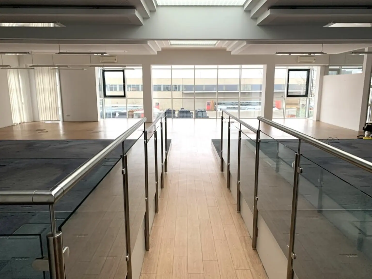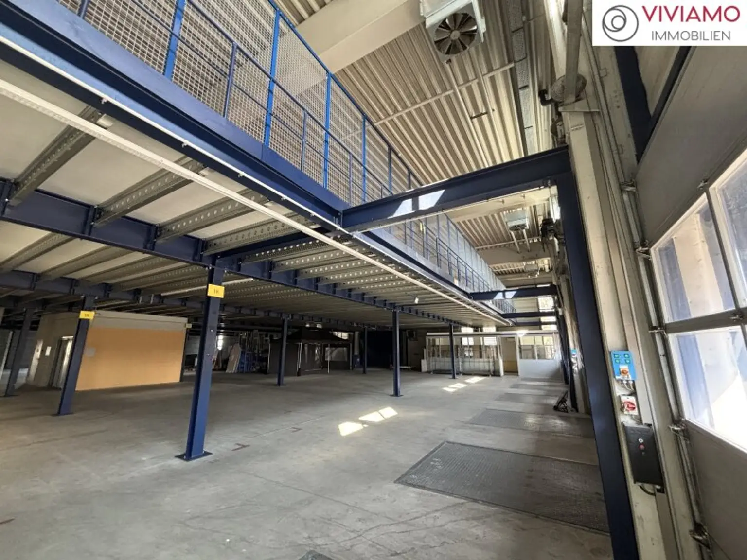 Für die Unterteilung EG + OG wurde eine Stahl-Mezzaninebene (Zwischengeschoss) samt 2 großdimensionierten Lastenaufzügen eingebaut: