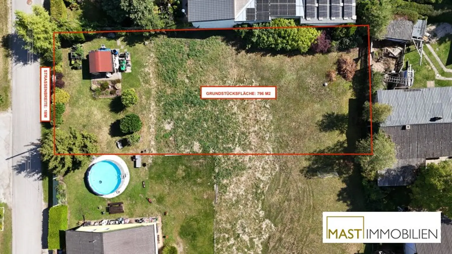 Das Grundstück umfasst eine Fläche von ca. 796 m². Es handelt sich hierbei um eine Neuteilung zweier bestehender Parzellen (Grundstück 3).
