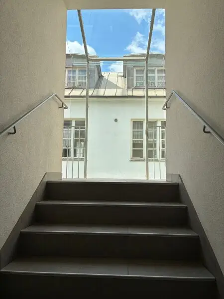 Vom Hauseingang mit Gegensprechanlage gelangt über ein helles freundliches Stiegenhaus in den 1. Stock