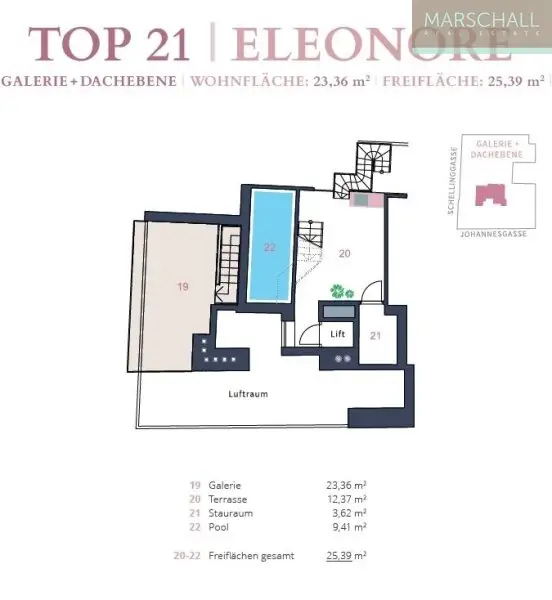 Im Dachgeschoß entstand diese luxuriöse Penthousewohnung mit großzügigen Terrassenflächen und eigenem Pool sowie mit einem wohnungsinternen Lift.