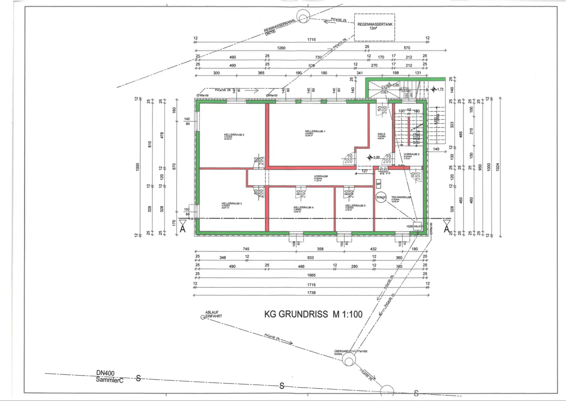 Kellergeschoss (ca. 122 m² – Rohbau)