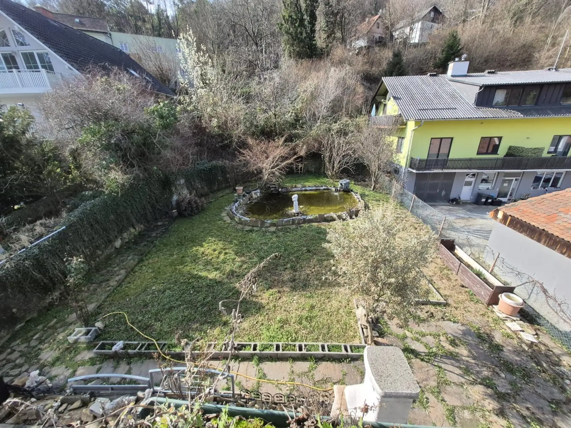 Das großzügige Grundstück sowie die attraktive Aussichtslage schaffen eine gute Basis für eine wertsteigernde Weiterentwicklung der Liegenschaft.