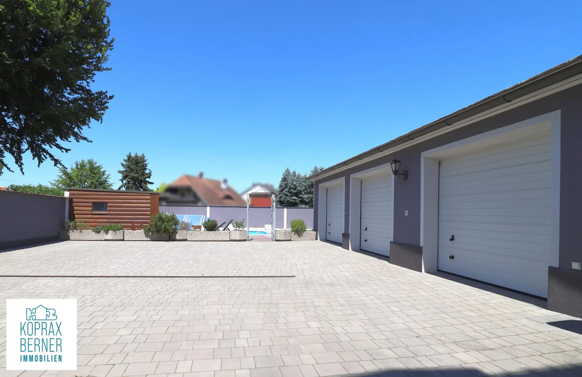 Im Innenhof stehen ihnen drei Garagen zur Verfügung, sowie eine vierte auf der Straßenseite.